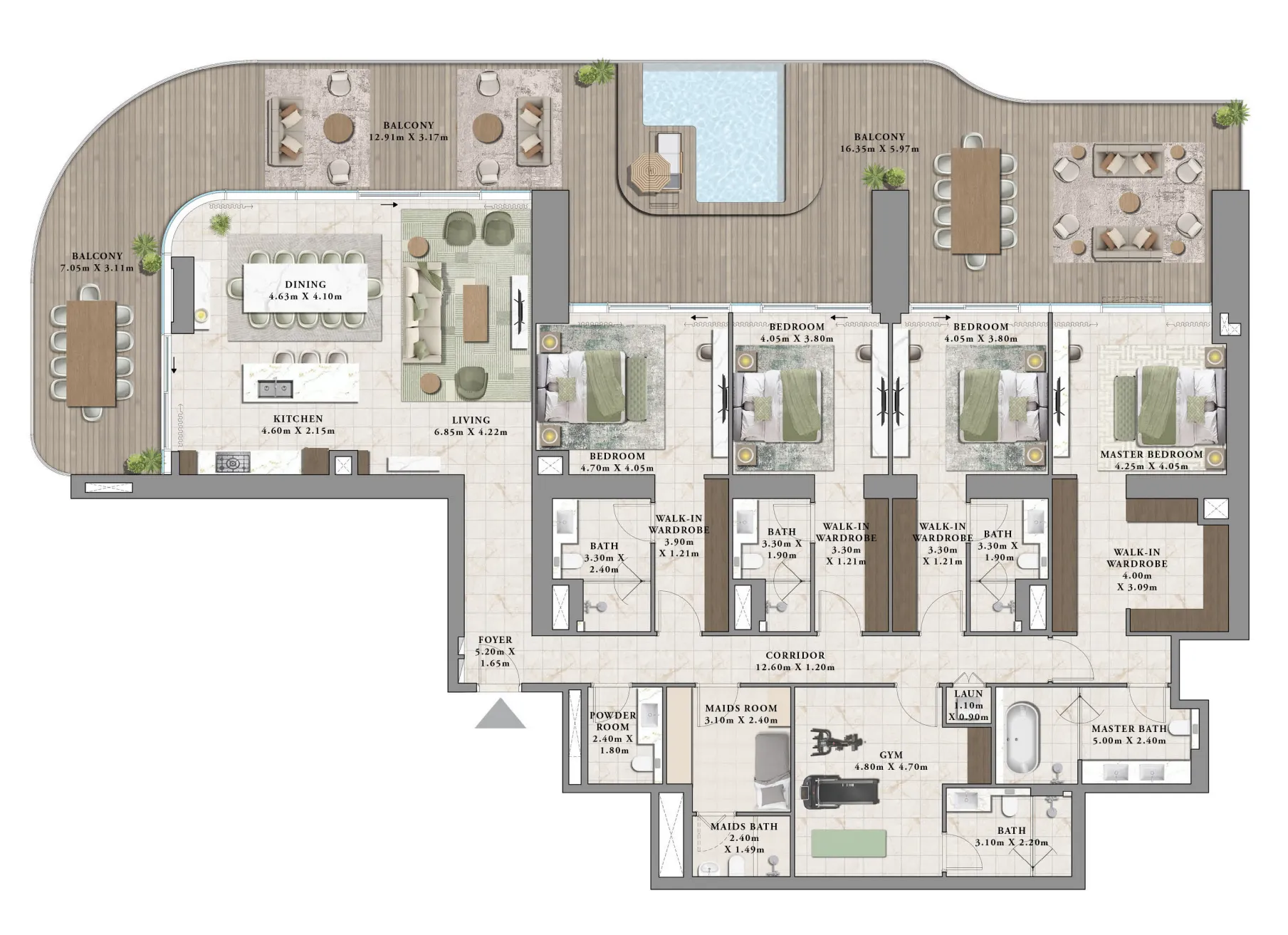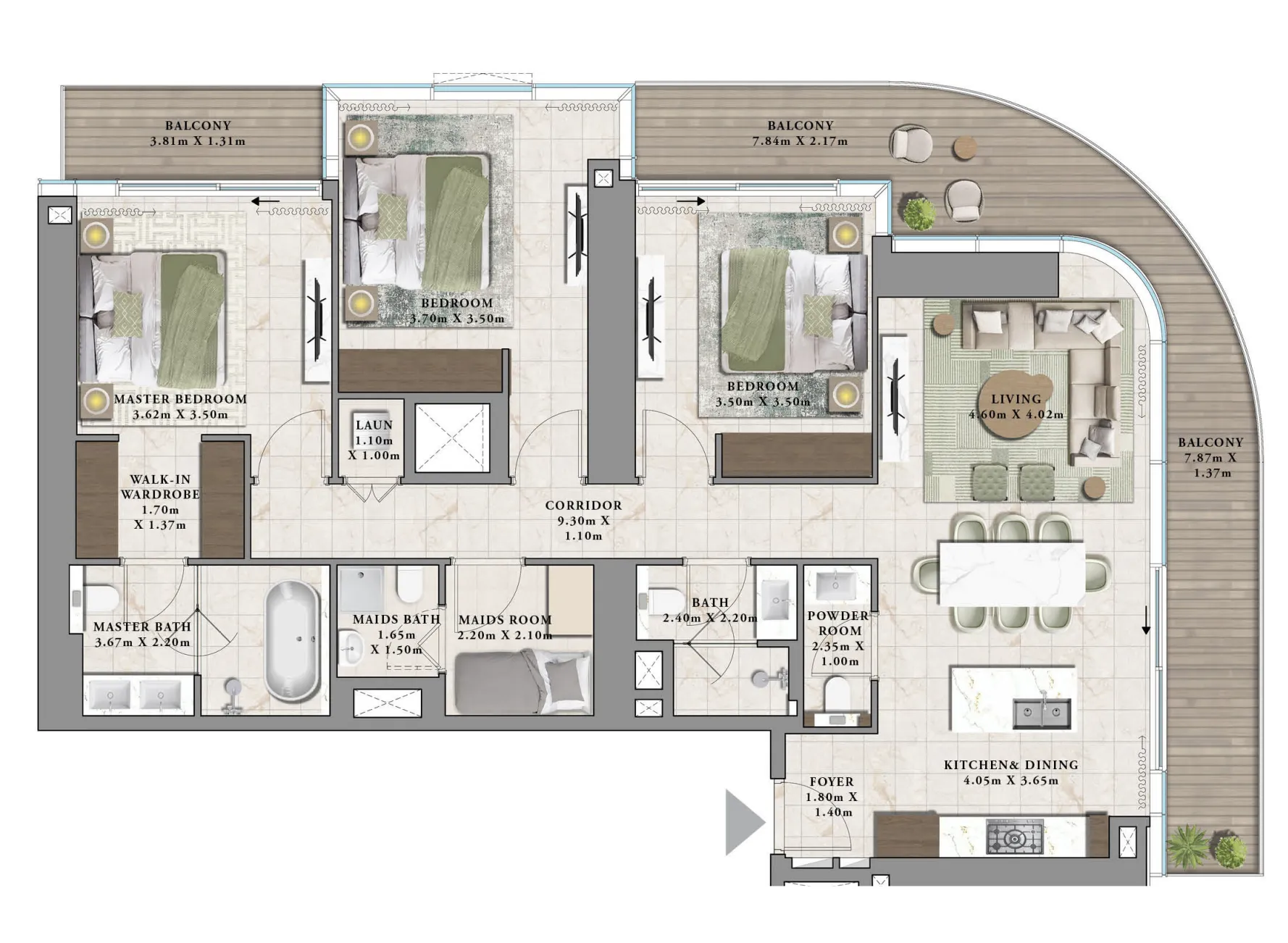Each residence is crafted with premium materials and warm tones, reflecting the meticulous craftsmanship that defines the Palace brand. The spacious layouts, thoughtful flow of natural light and sweeping views come together to elevate everyday living to a new standard. Avarra by Palace stands as a perfect harmony of style and comfort, offering an environment where luxury is not only seen, but felt in every moment.