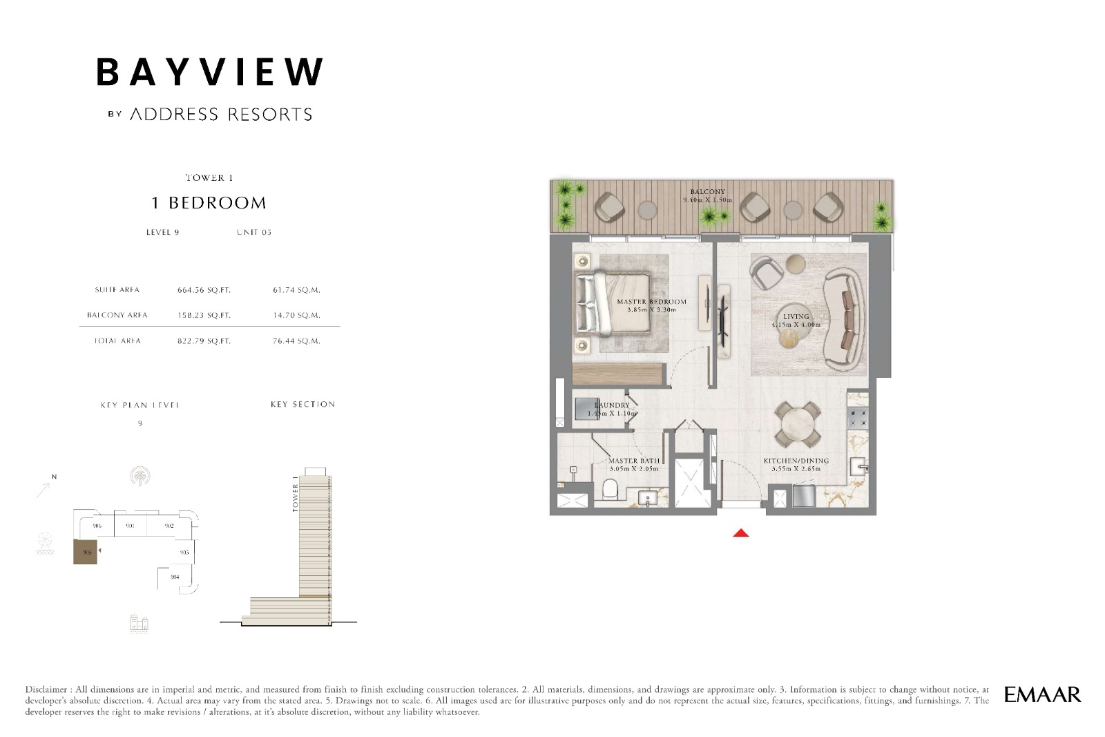1 Bedroom Apartment 736 sqft- 822 sqft