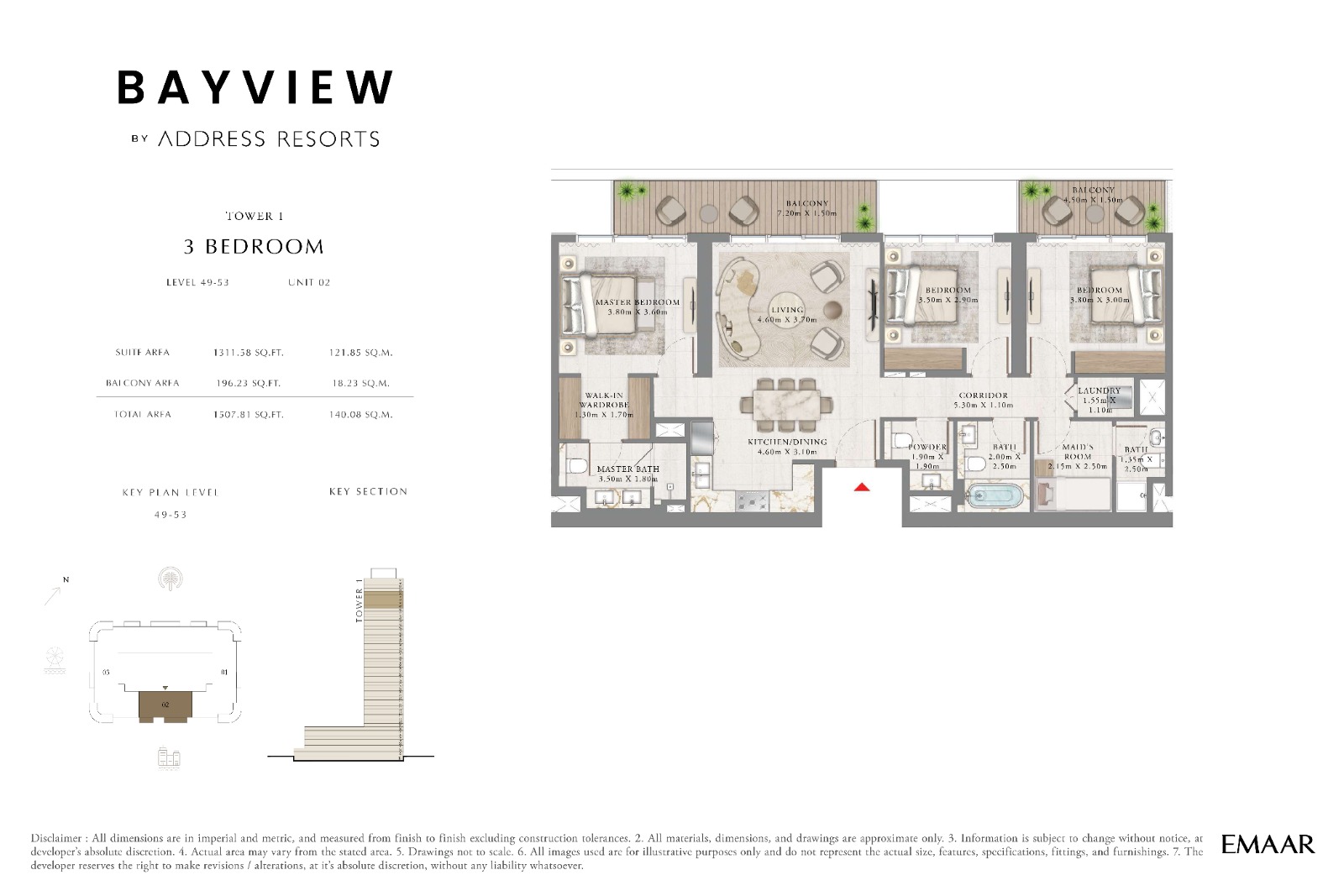 3 Bedroom Apartment 1507 sqft- 1808 sqft