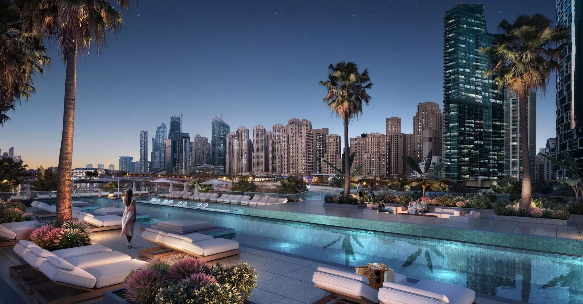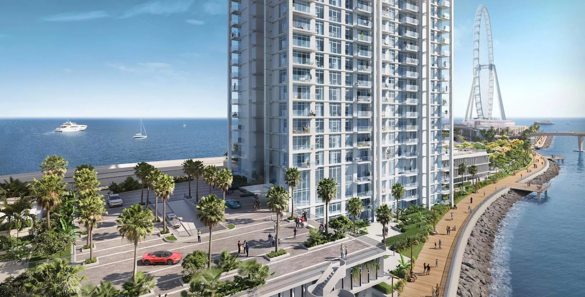 Bluewaters Bay is an upscale residential development by Meraas Holding, which is located on the iconic Bluewaters Island next to JBR beach. As an addition to the existing Bluewaters Residences complex, the Bluewaters Bay was launched in Q4 2022 and comprises 2 beautiful towers, with a selection of stylish 1–4 bedroom apartments and 3-bedroom opulent penthouses with generous living and dining spaces. In total, the residential project plans to have 672 residential units plus 1 retail unit.