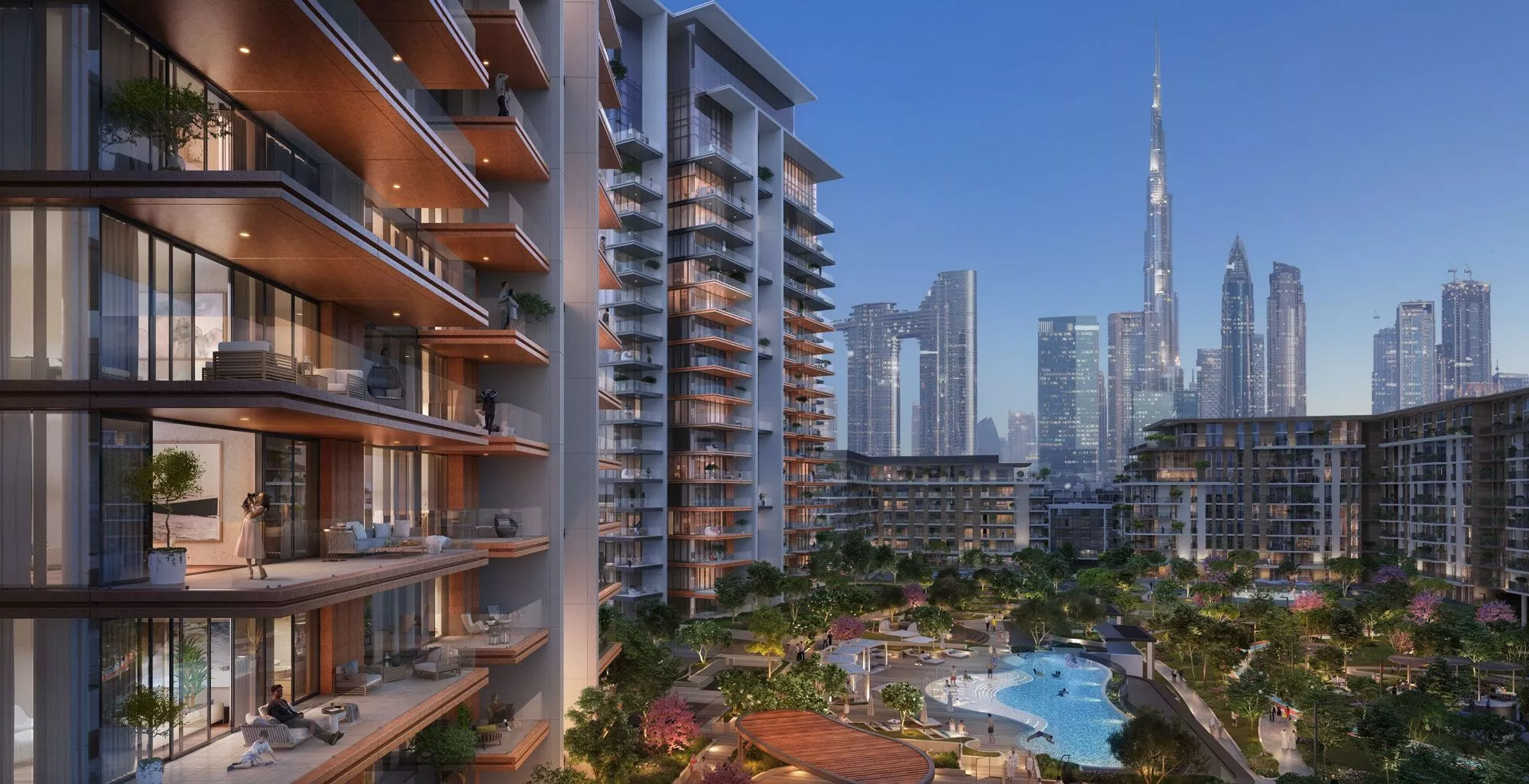 The key features of the premium residences include fully-equipped open kitchens, built-in wardrobes in the bedrooms, sliding windows and spacious balconies. Penthouse owners will enjoy the utmost comfort thanks to the show kitchen, the private swimming pool on the rooftop terrace, the panoramic glass elevator and more. Please note that 3-5 bedroom units come with a maid’s room,