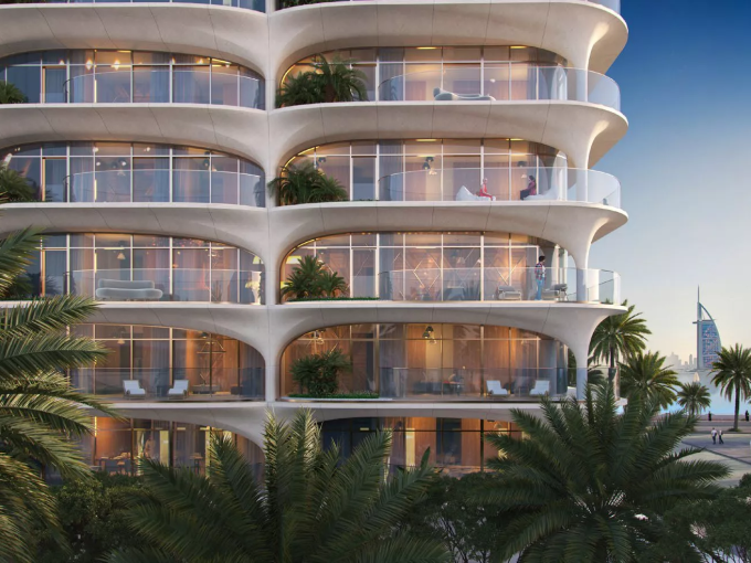 Thanks to the innovative design, each exclusive unit will enjoy either 180 or 360-degree panoramic views of the Burj Khalifa, the Burj Al Arab, Palm Jumeirah and Ain Dubai. Among the key features of the properties are branded kitchen appliances, high ceilings in the living rooms, floor-to-ceiling thermally insulated windows and smart home features. Please note that there will be 3 design colour schemes to select from: Opal — White, Mist — Grey, Sand — Beige.