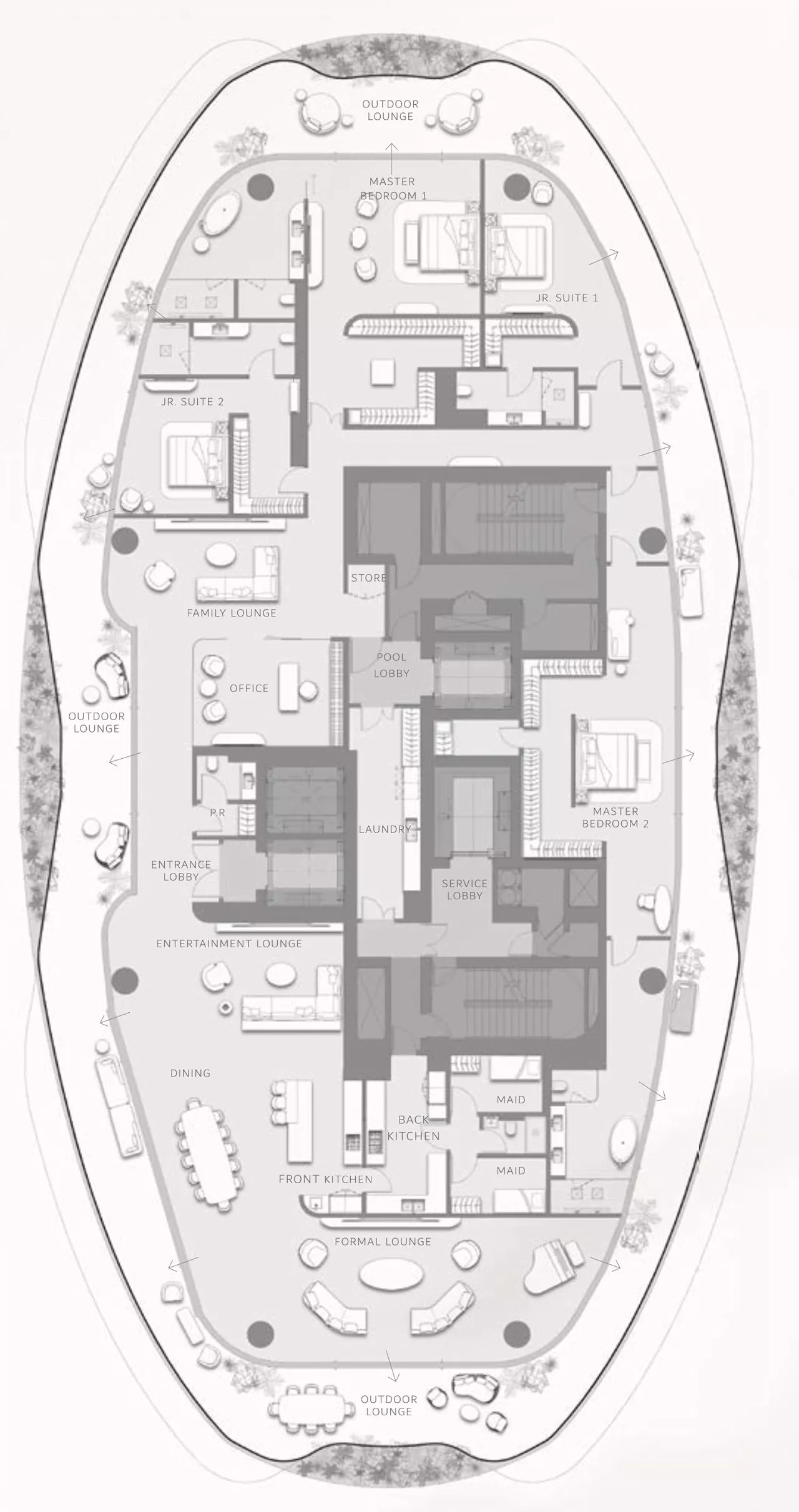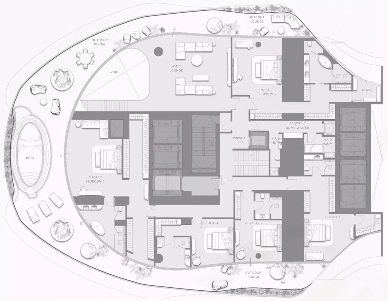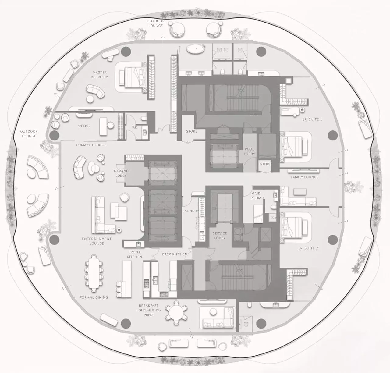 The total size of properties ranges from a spacious 4,470 sq. ft to a colossal 21,949 sq. ft. Each extravagant residence will come with outdoor lounges and dining areas, at least one maid’s room and back & front kitchens for the utmost convenience of homeowners. Select layouts also include a private swimming pool, which will add to the resort-like atmosphere. Not forgetting a separate driver’s quarters which will be featured in a number of exquisite apartments.