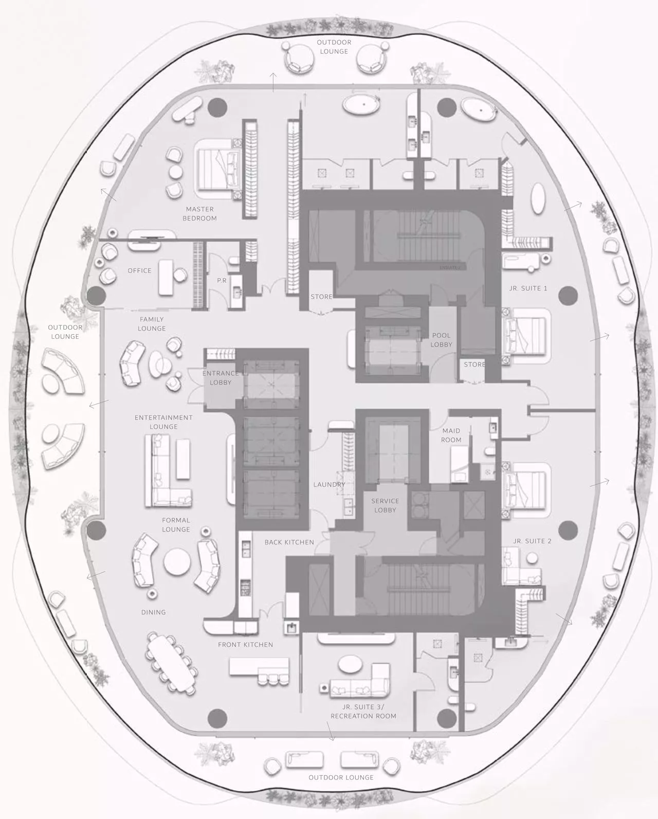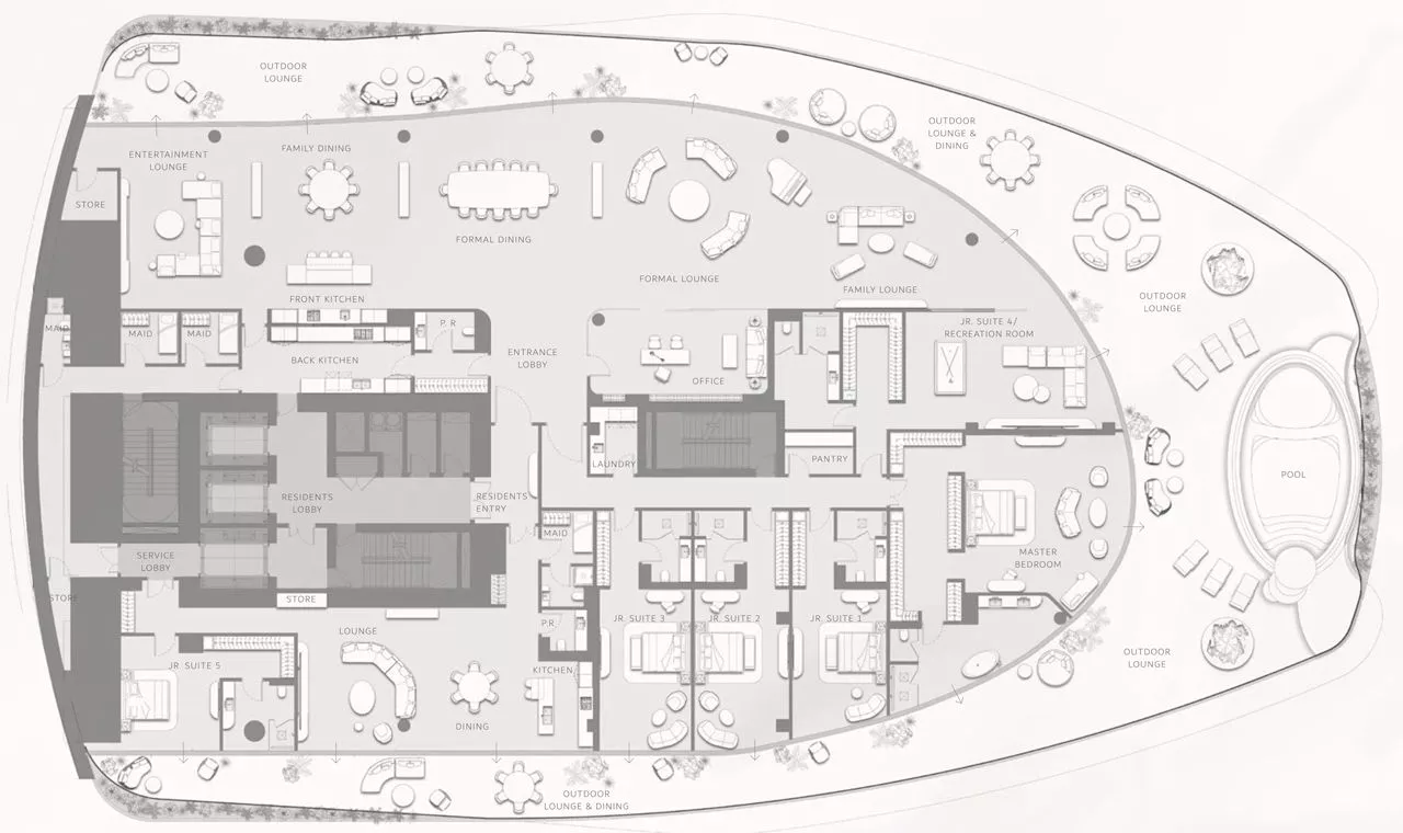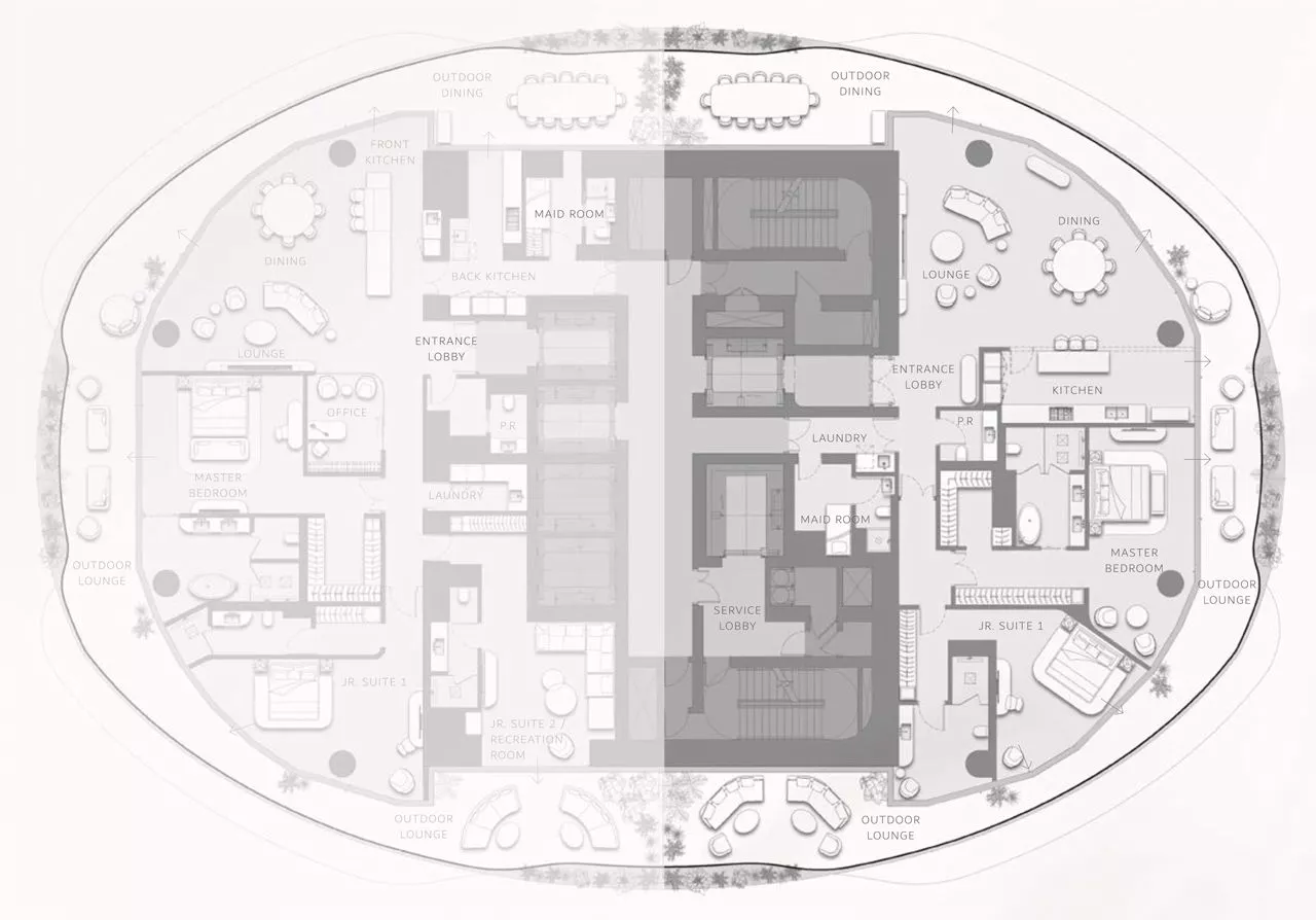 You will be provided with the utmost privacy, as each floor will house only 1 or 2 apartments. That said, the units will be served by access-controlled elevators leading to individual private lobbies. Residents will be provided with between 3–7 parking bays, depending on the property type, and the exclusive penthouse will have 10 designated car spots.
