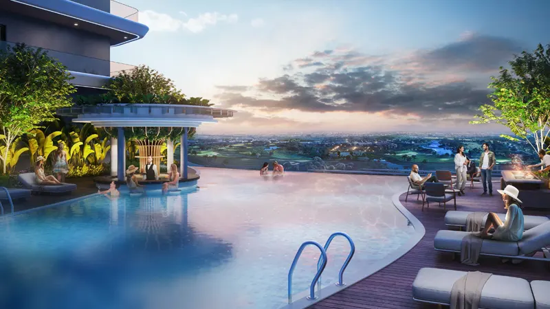 Some exceptional options of a large pool, a swim-up bar and the deck area with breathtaking views are at the podium level in easy reach of everyone. The climbing wall, a well-equipped gym, a kid’s play area, and an outdoor cinema are the premium features at the doorstep of dwellers.