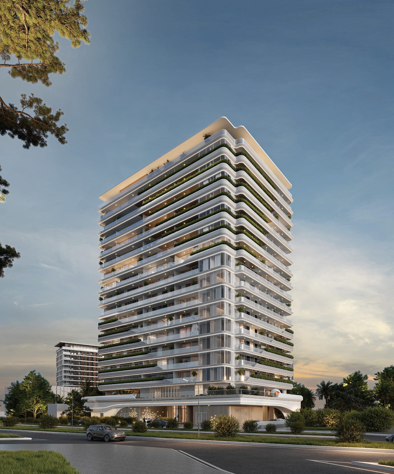 Floarea Oasis, a striking testament to luxury living in the prestigious Dubai Land Residence Complex. Rising majestically across 13 floors, this distinguished development features 257 beautifully appointed residences, including studio, 1-bedroom, and 2-bedroom apartments, making this project an ideal retreat for modern living.