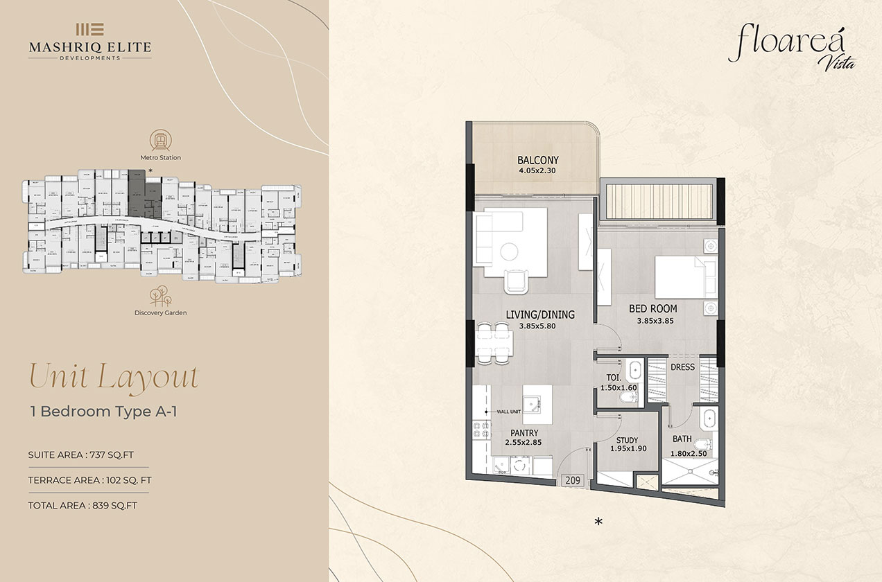 Experience modern urban living at its finest at Floarea Vista developed by Mashriq Elite with premium curated studios, 1 and 2-bedroom apartments in Discovery Gardens, Dubai. Boasting exquisite interiors, contemporary exteriors, and an array of exceptional amenities, this 10-floor architectural masterpiece comprises limited 158 residential units at service. This exclusive residential development offers a contemporary lifestyle in the heart of the bustling community.