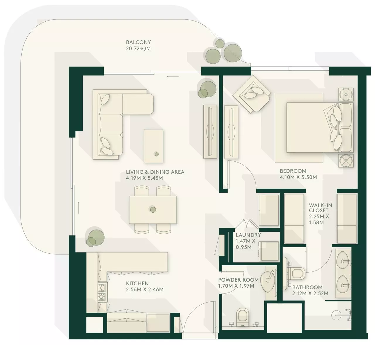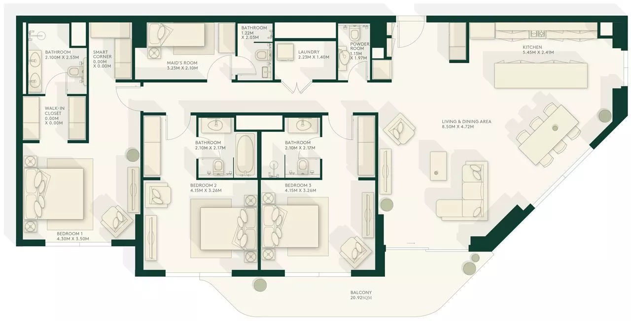 Properties in Gardenia Bay are presented by a collection of elegant apartments with an abundance of light and an airy feel. Family living spaces and naturally-designed bathrooms in your residence can be delivered in light or dark colour schemes. Real estate configurations in the project include studios and 1–3 bedroom apartments, with living areas of units varying from 473 sq. ft to 1,937 sq. ft.