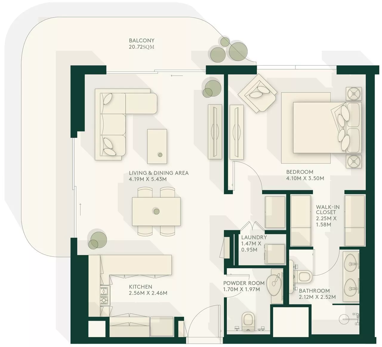 The waterfront community by Aldar Properties is a sustainable project, which will positively impact on the environment. For example, the use of smart metres and recycled water will allow residents of Gardenia Bay to reduce water consumption. The neighbourhood will be equipped with green spaces for landscaping and biodiversity.