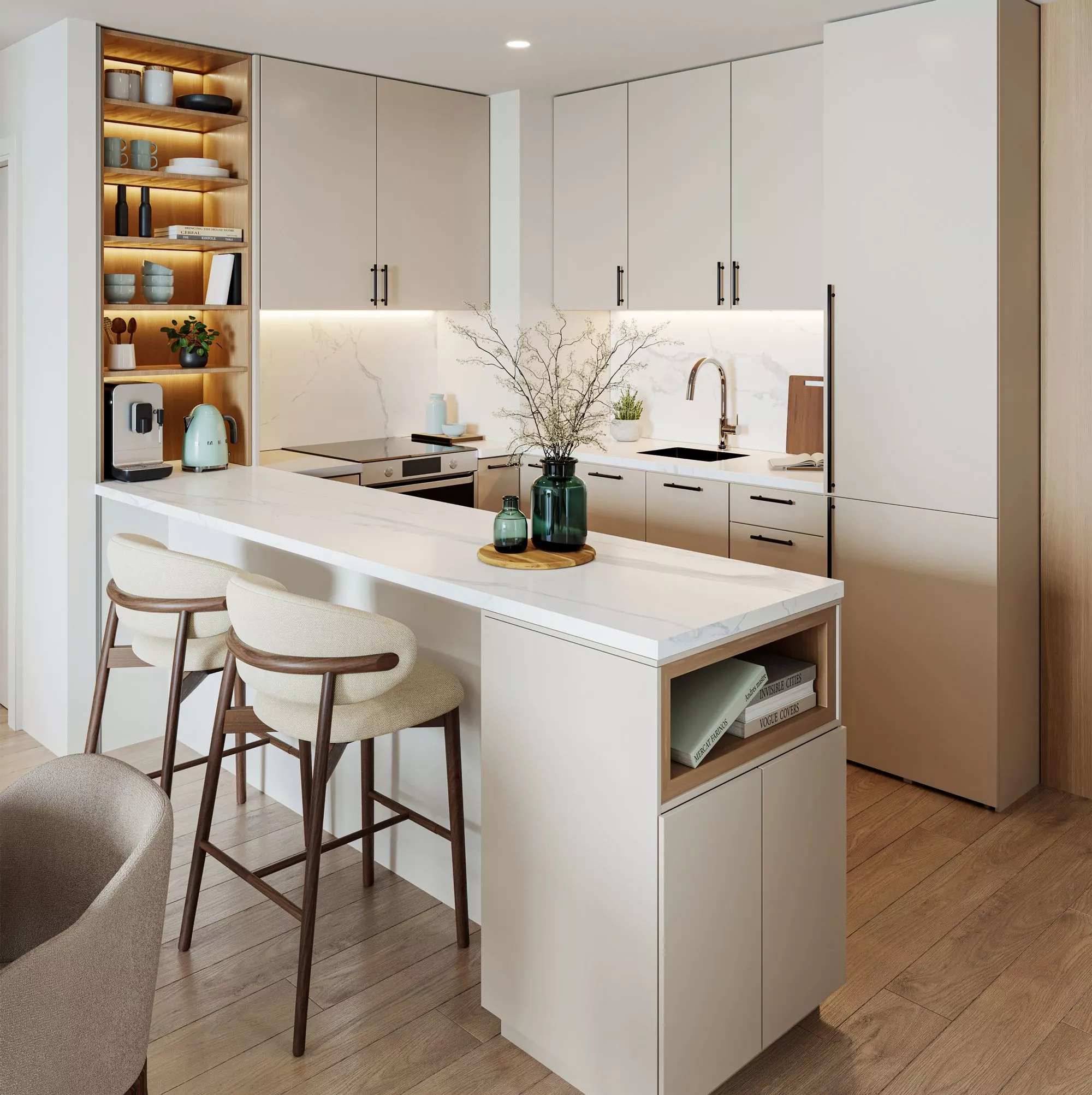 The residences will come with fully fitted kitchens, which will have state-of-the-art appliances, stain-proof prep counters, overhead cabinets and glazed porcelain flooring. The bedrooms will be furnished with glazed porcelain floors and in-built wardrobes, whilst the master bedrooms will include an en-suite bathroom. In terms of the layouts, residents will enjoy private balconies overlooking luscious greenery. The owners of the 3-bedroom units will additionally have a laundry room and a storage room at their disposal.