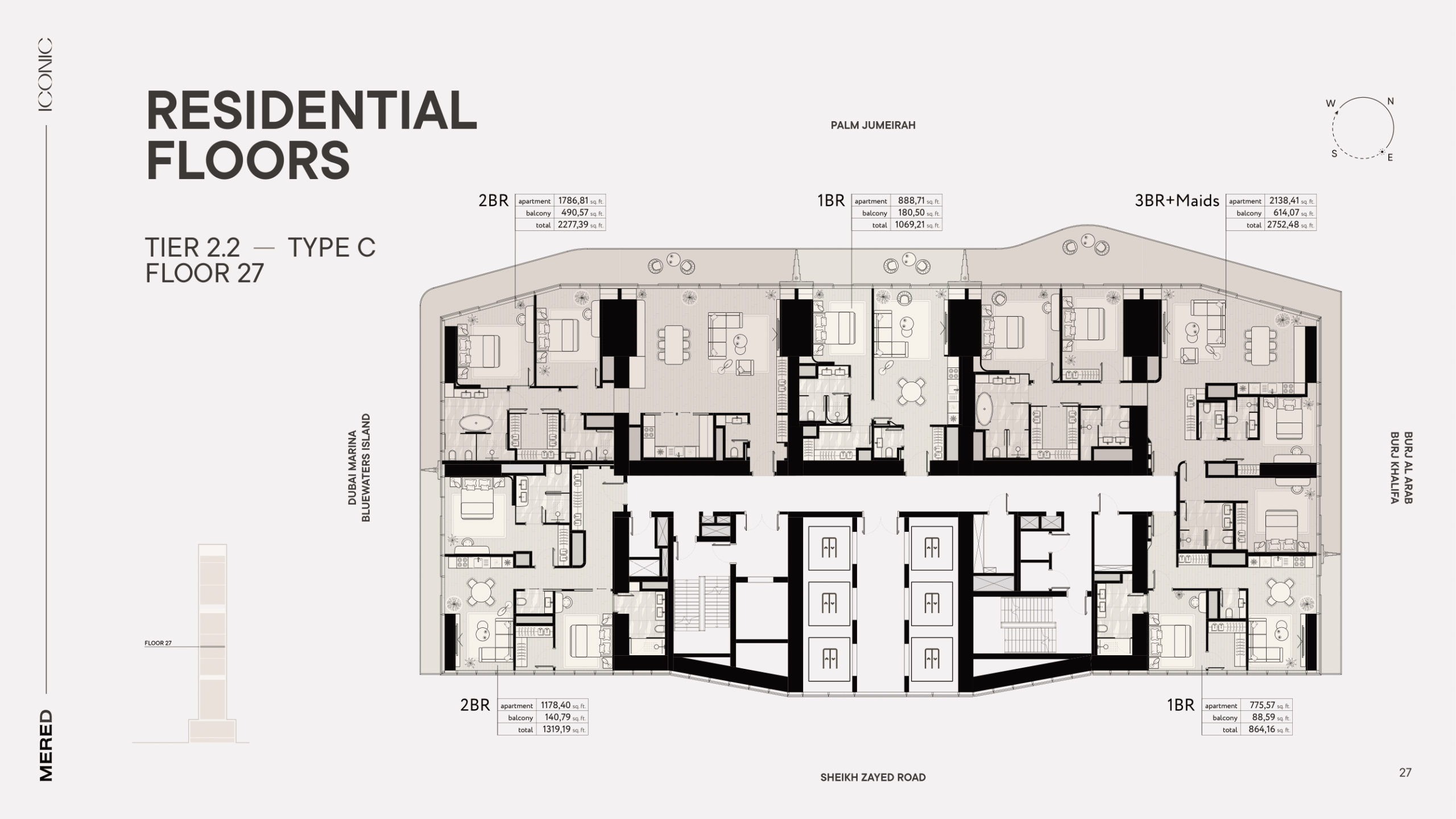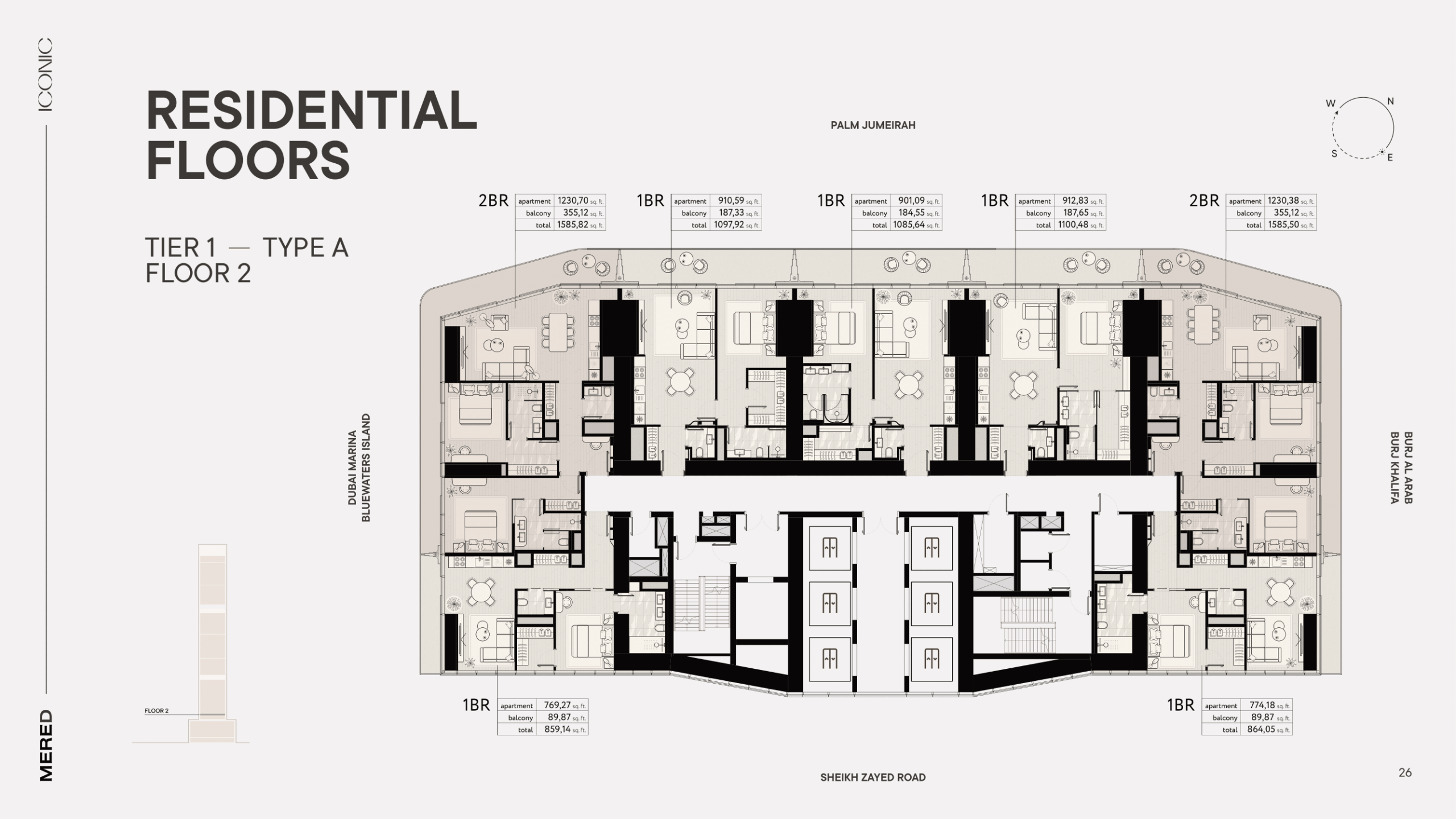Iconic Tower is a high-end development by MERED (PIONEER), who has completed 36 projects across Eastern Europe and the USA. Conveniently located on Sheikh Zayed Road next to the Dubai Internet City metro station, this is the tallest apartment building in the city. It comprises 67 floors, with a total of 310 residential properties. Iconic Tower is distinguished by its stunning design by the world-famous Italian Pininfarina brand.