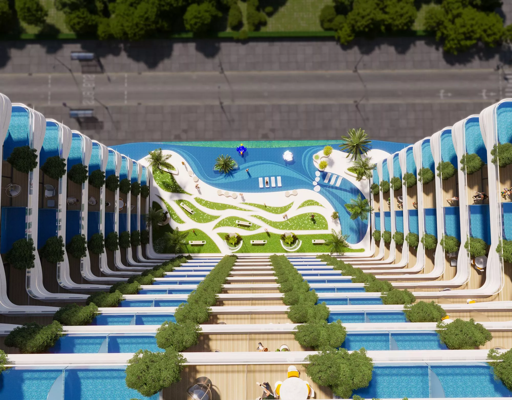 The main feature of every residence at IVY Gardens will be the private pool located on the balcony, overlooking the surrounding areas and the community pool. The living room and kitchen will be designed with sleek, modern furniture and appliances, with natural tones that seamlessly flow to the outdoors. The bedrooms will be an extension of the design in the living space, with hidden wardrobes and earthy colours. The bathrooms will have modern sanitaryware for the utmost comfort and convenience.