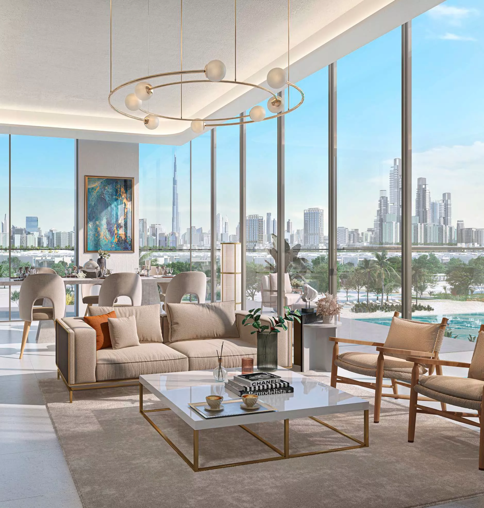 The high-end residences will offer the finest views of the crystal lagoon and Dubai skyline. The interiors will be executed in neutral colours, allowing you to customise your home to your liking. To create a more comfortable living environment, the master developer will ensure the availability of built-in kitchen appliances from leading European brands.