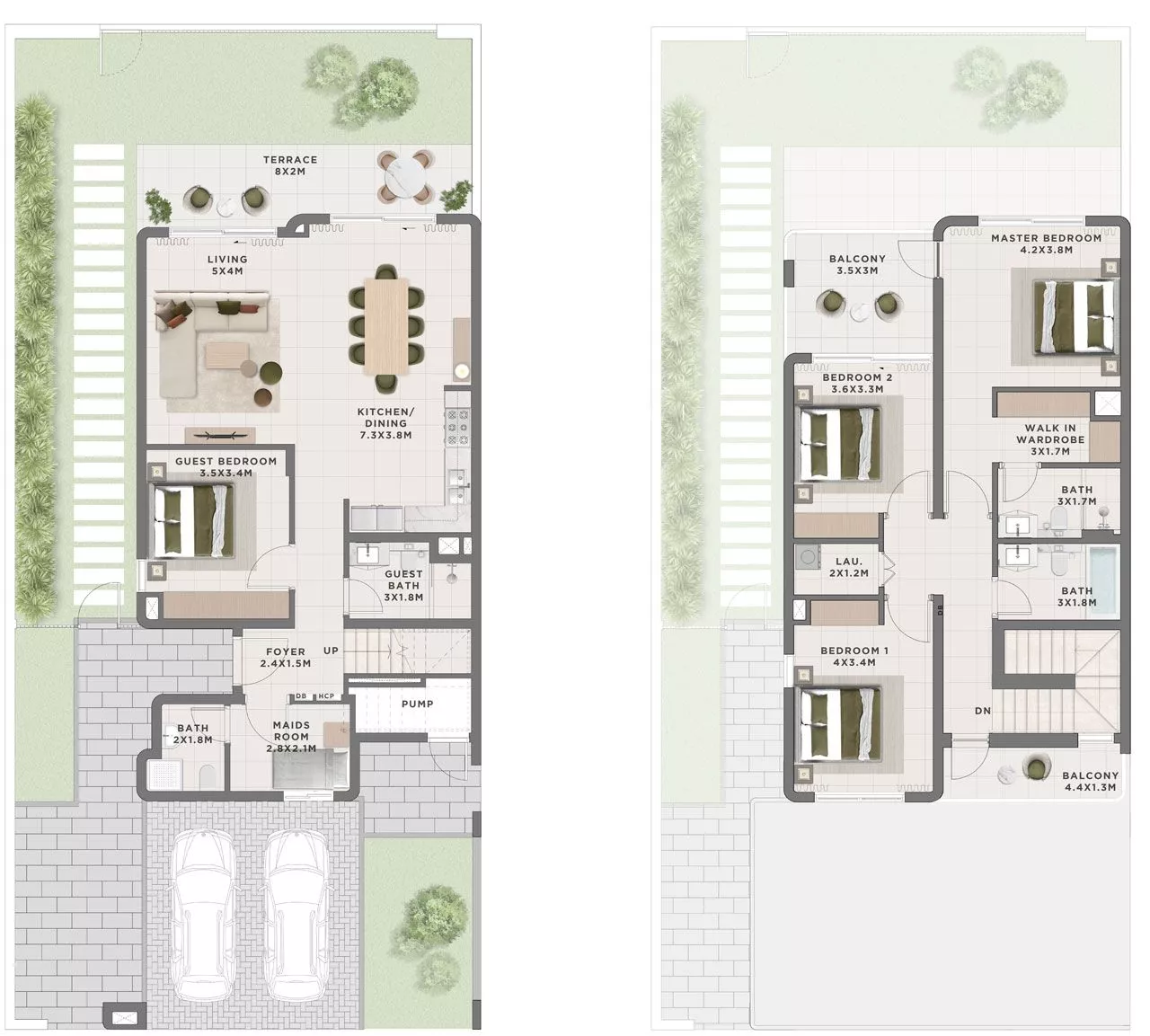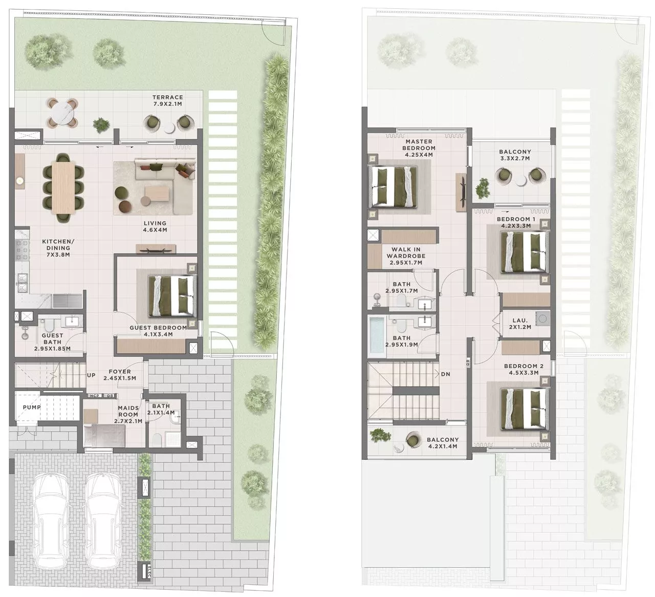 There are 2 types of designs available: Cedar and Canna. For your utmost comfort, the layouts include a maid’s room, a garden, a 2-car garage, and terraces. The master bedrooms will have walk-in closets, whilst the other bedrooms will have built-in wardrobes.