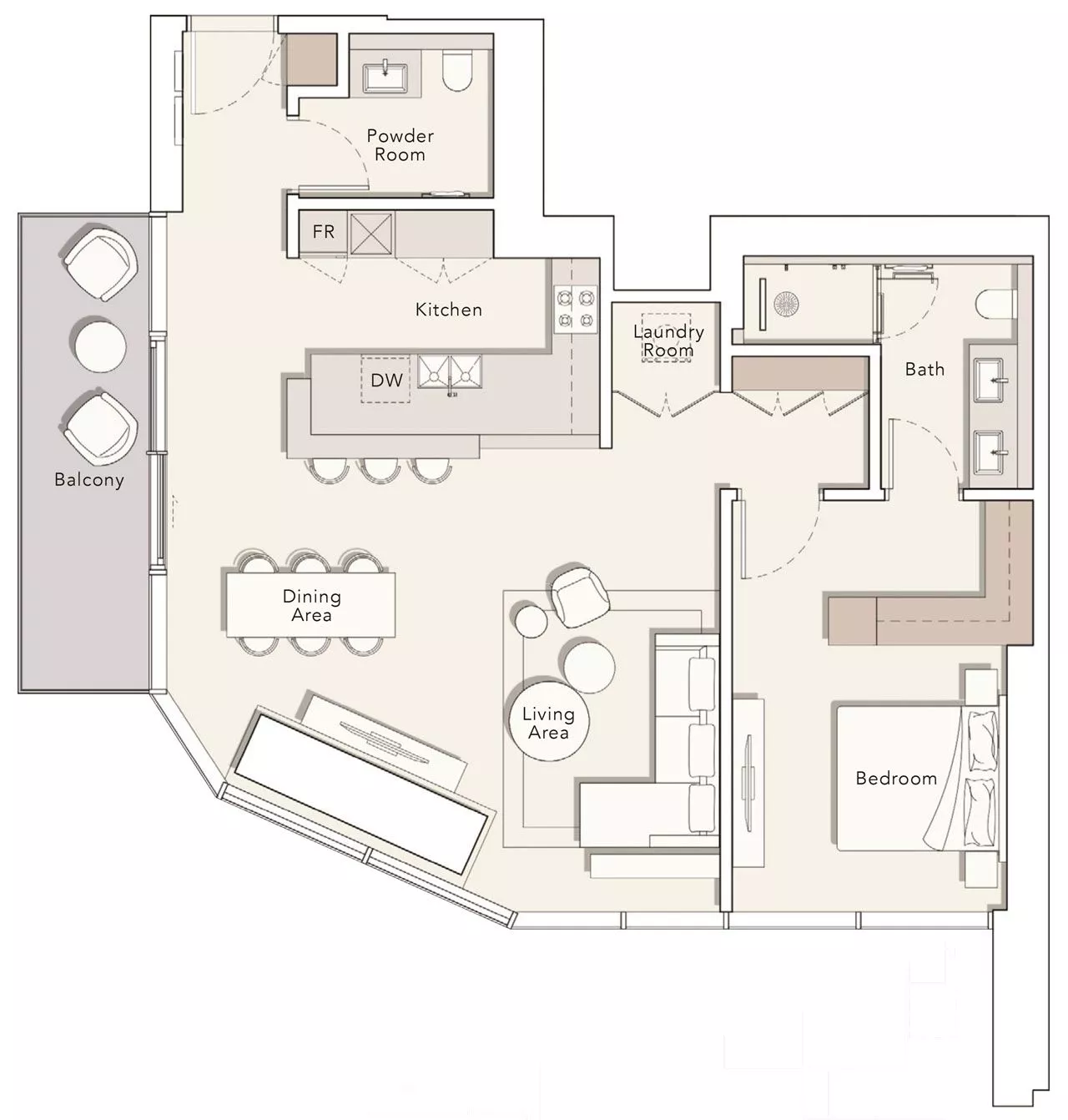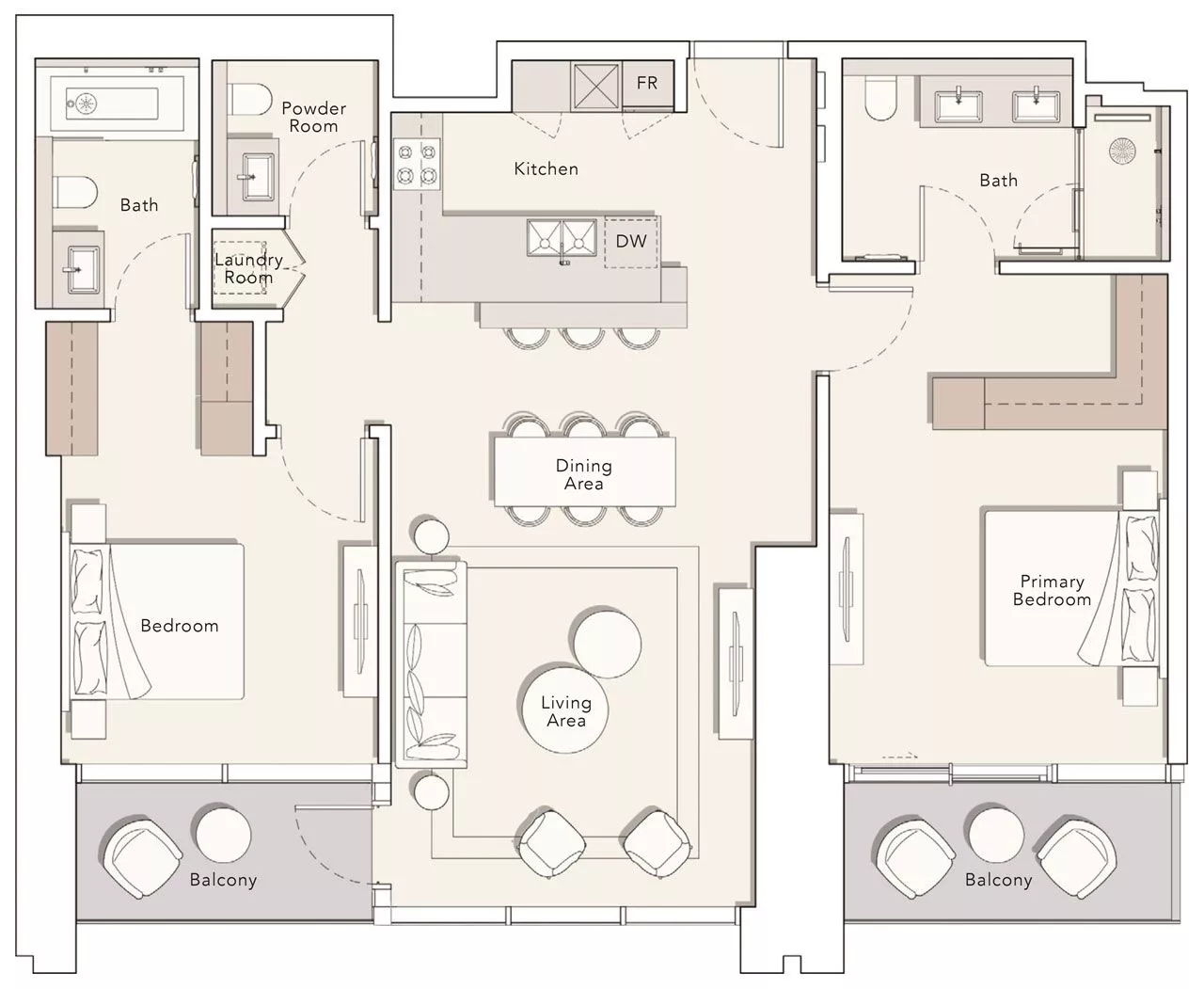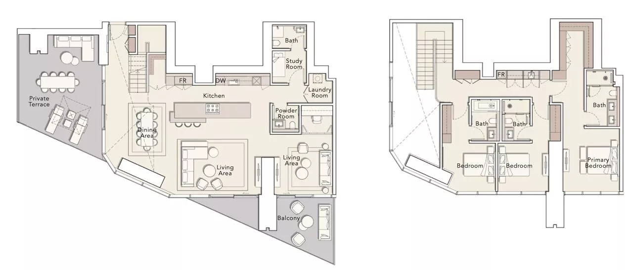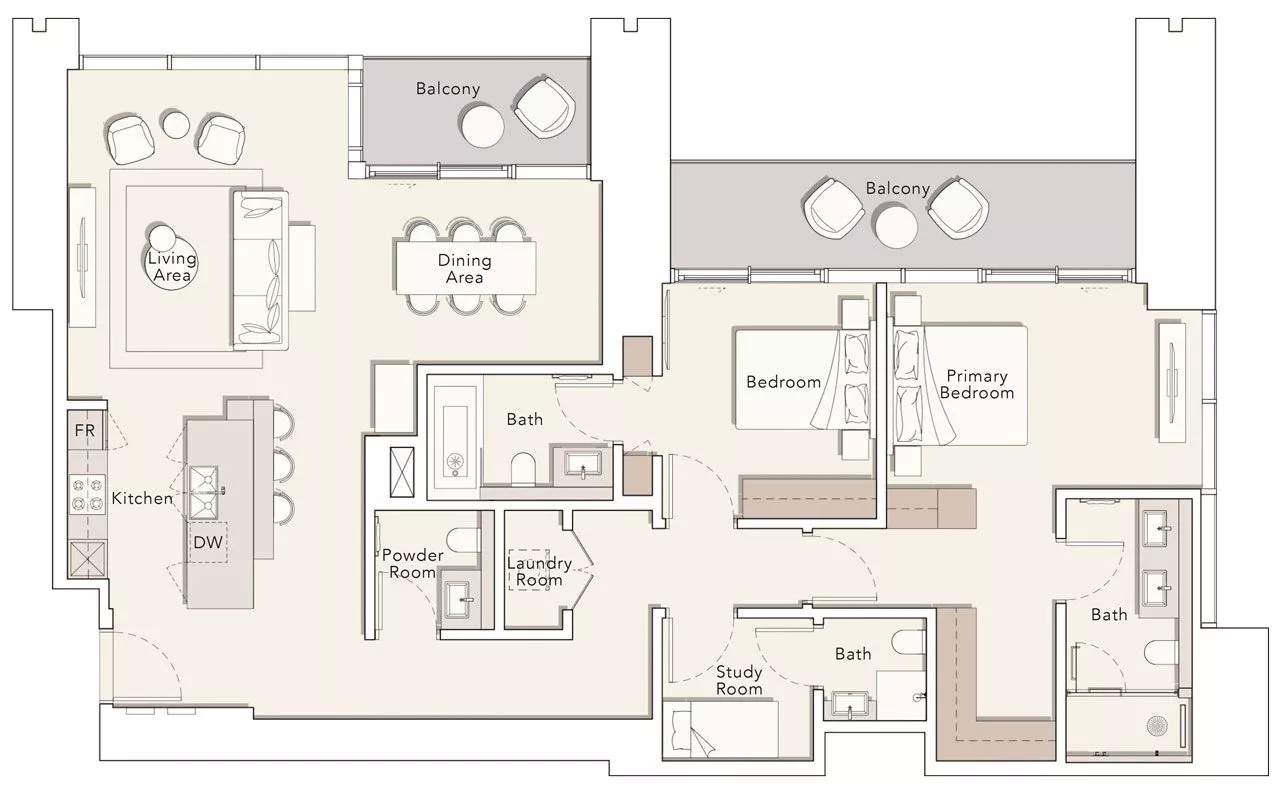 The residences measure from 487 sq. ft to 5,847 sq. ft, including the balconies. The layouts may include a laundry room, a powder room and a maid’s room. The duplexes and penthouses come with a study, a store room and a private terrace, whilst select units are additionally complemented with a swimming pool. What’s more, the 3-bedroom units, penthouses and duplexes will have an integrated drop-in sink with a vegetable and fruit rinser and a pop-up downdraft hood slider in the kitchens.