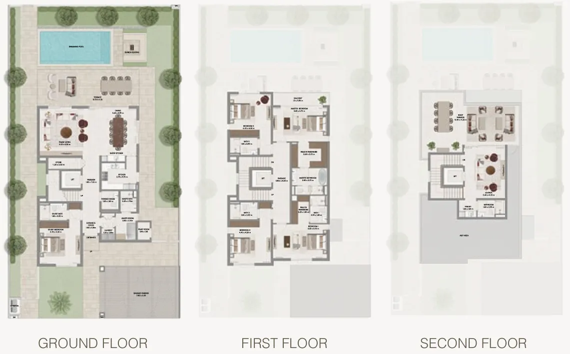 Inside, the 4- and 5-bedroom villas are crafted to recenter life around comfort, balance, and biophilic design. With open-plan layouts, sunlit living areas, panoramic views, and seamless indoor–outdoor transitions, the homes feel connected to both the landscape and the rhythm of modern family living. Interiors use earthy palettes, organic textures, and soft natural illumination to enhance well-being, while terraces and gardens extend the living experience outward into lush greenery.