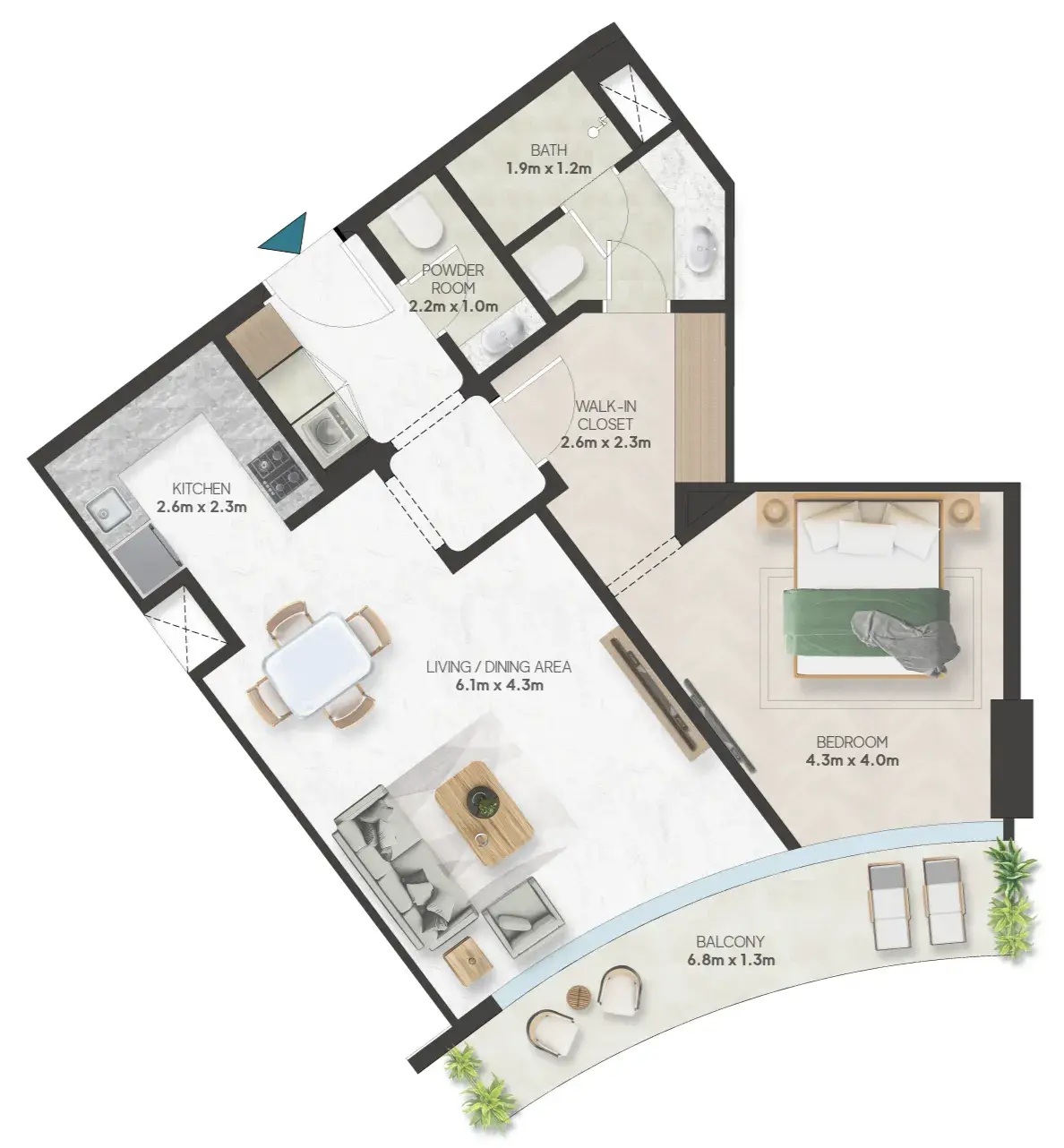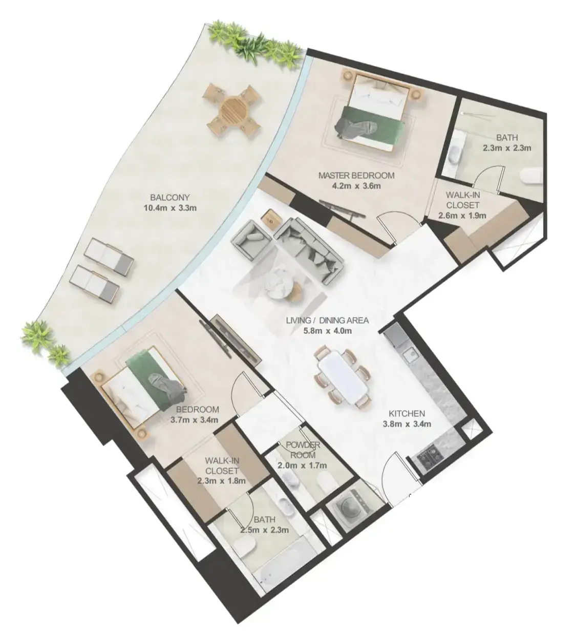 Oystra’s interiors are crafted to reflect the project’s overarching concept of fluidity and organic form. The design language seamlessly blends luxury and natural elements, creating spaces that feel both refined and welcoming. The aesthetic is modern, with a focus on curvature, softness, and understated elegance.