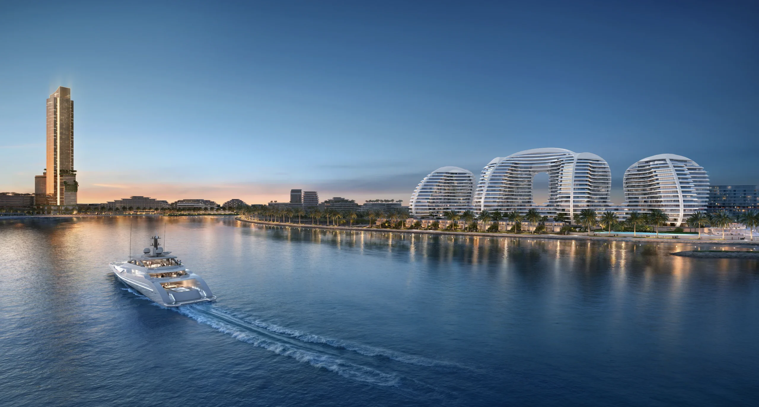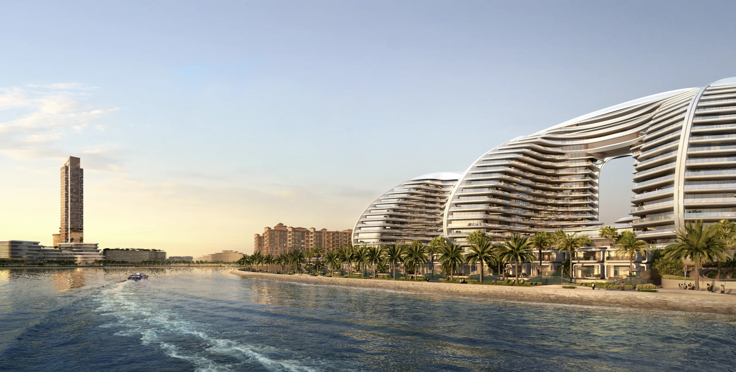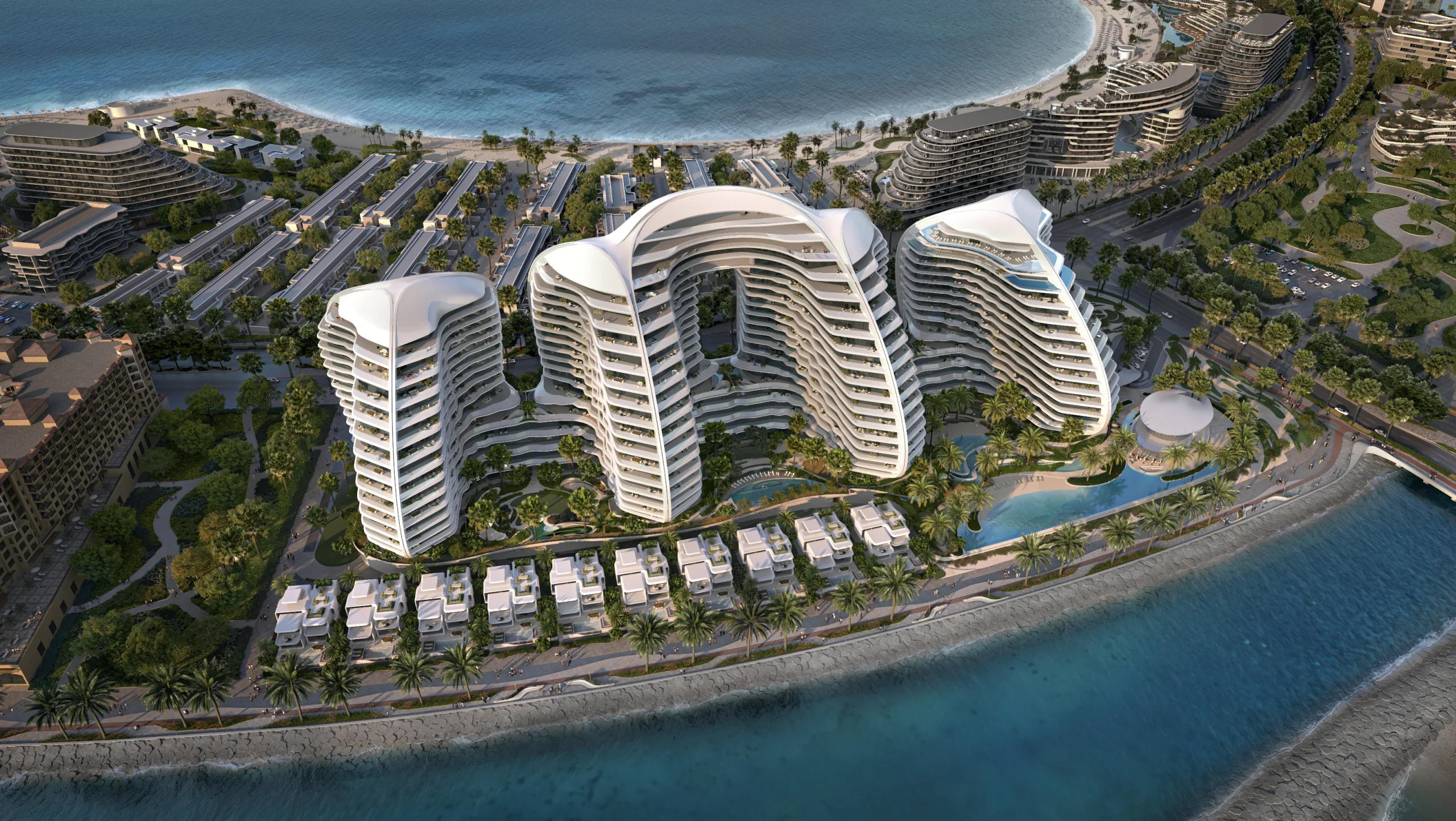 Designed a s a living sculpture, Oystra embodies the idea of movement. Its curved facades, flowing balconies, and seamless transitions are inspired by the natural flow of water. This visionary approach allows the building to blend effortlessly with the surrounding landscape while standing out as an iconic structure on Al Marjan Island.