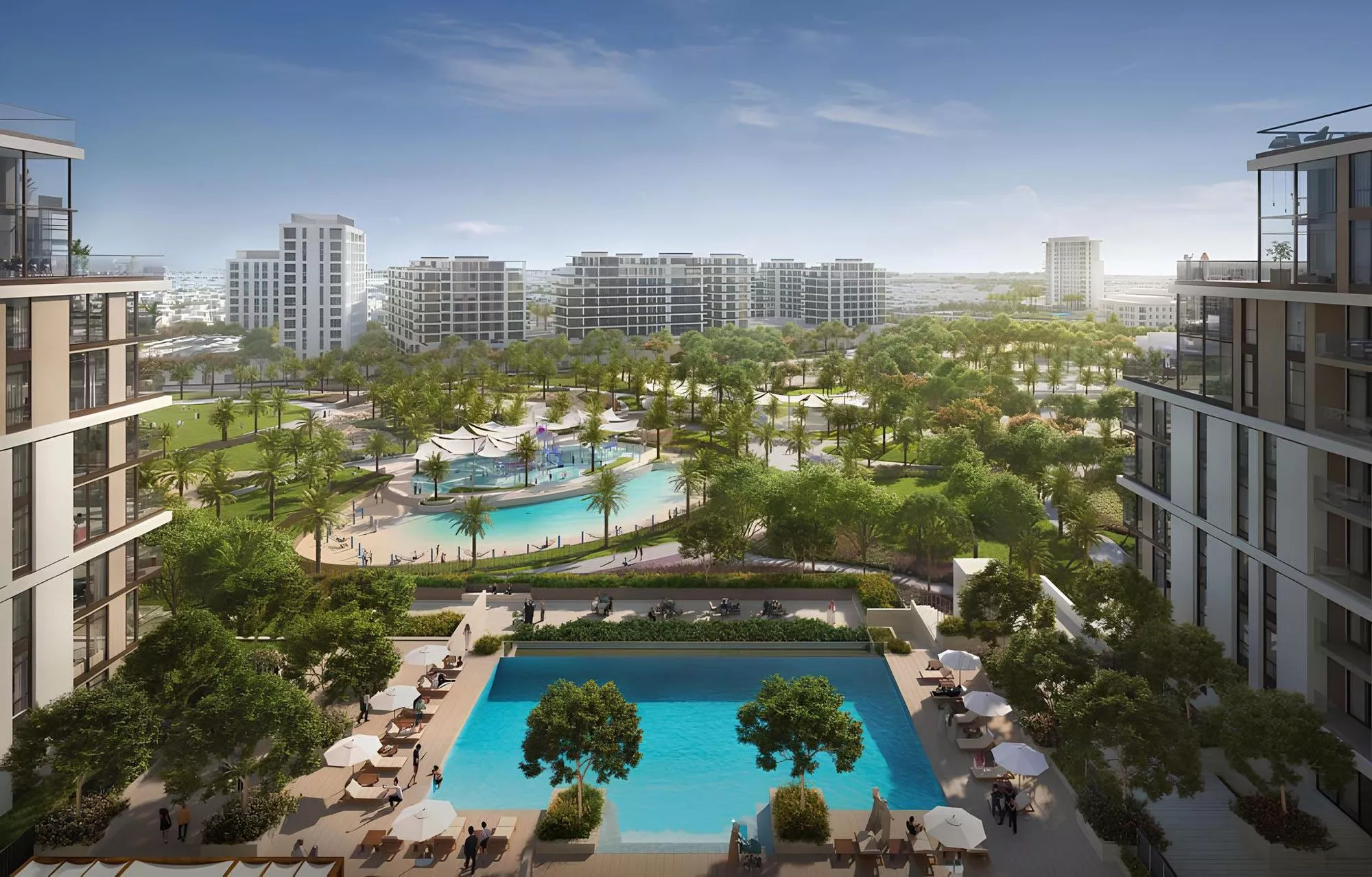 Nestled against the backdrop of the Burj Khalifa, Parkside Views is a 15-storey development by Emaar Properties in Dubai Hills Estate. It offers an array of 1-3 bedroom apartments in addition to 14 duplexes and 6 spacious townhouses in 3-bedroom configurations.