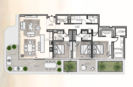 The architectural design excellence extends perfectly from the beachfront to display oceanic fluidity through its every element. The building’s tiered terraces produce a sea-like front edge which unifies with coastal elements through its extensive glass panelling which smoothies the boundary between ocean views. Every residence showcases extensive daylight views and sea panorama through its architectural design to achieve openness and unlimited natural light. The stunning entry features calm reflective pools and graceful fountains which lead visitors to its magnificent lobby showcasing a sophisticated beach lifestyle.