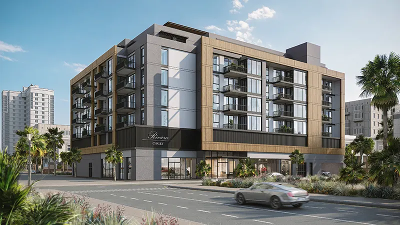 Riviera Chalet at Jumeirah Village Circle (JVC), Dubai, is a distinctive residential project by the Riviera Group, offering 1 & 2-bedroom smart-home apartments, designed to invigorate both mind and body with unparalleled comfort and convenience. Drawing inspiration from the timeless chalet design philosophy, it seamlessly blends aesthetic moods and tones to create a serene living environment. The development stands out with its characterful architectural design, featuring slopes and gradients that optimize space utilization for effortless living.
