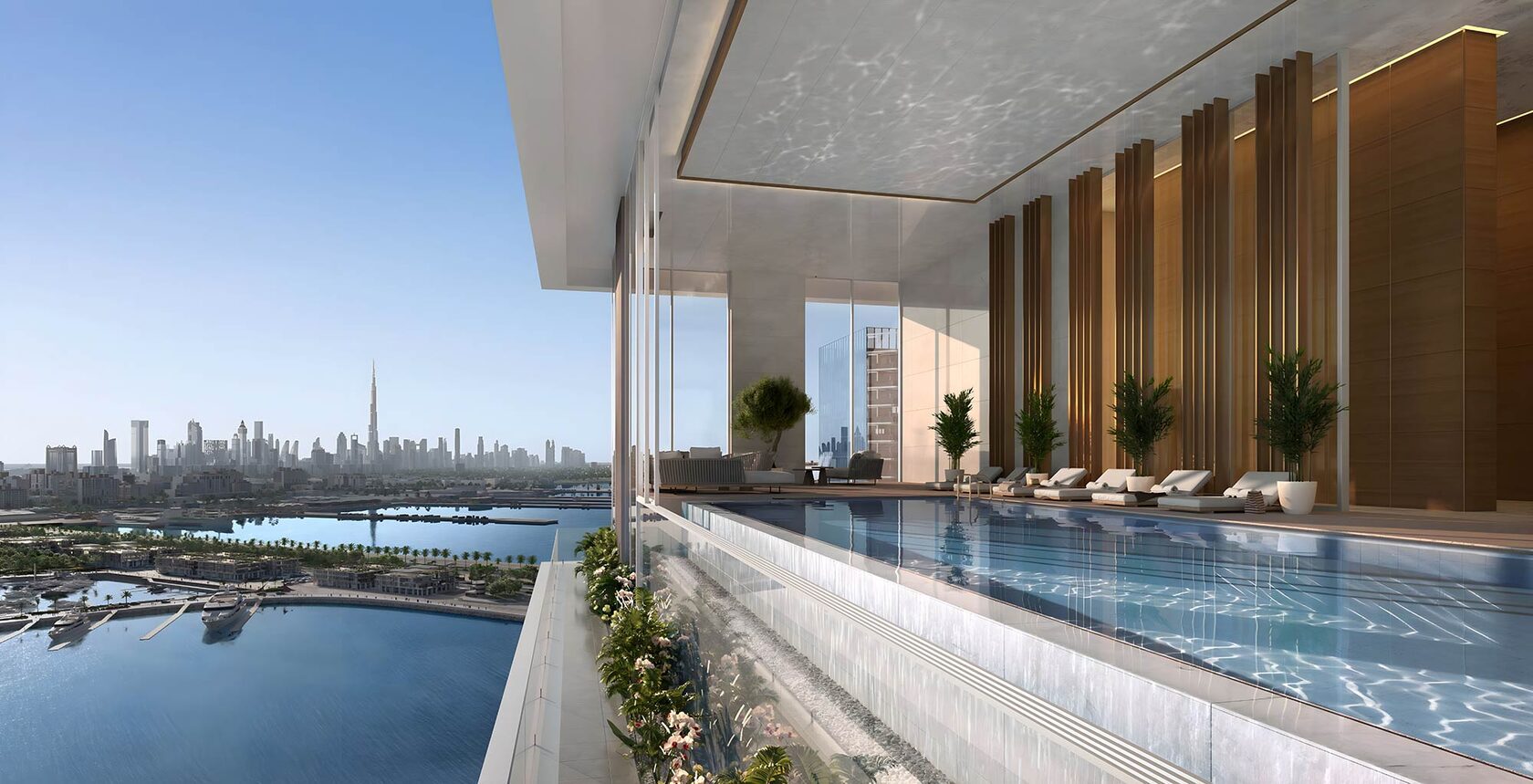 Inspired by tropical resorts, the property features lush landscapes, elegant spaces, and resort-like amenities that ensure every day feels like a vacation. Upon entering the grand lobby, you are greeted by a world of sophistication and tranquillity, designed to evoke the eternal bliss of an endless getaway. Whether it’s the infinity pool overlooking the Marina or the private rooftop terrace of a penthouse, it ensures a seamless blend of relaxation and luxury.