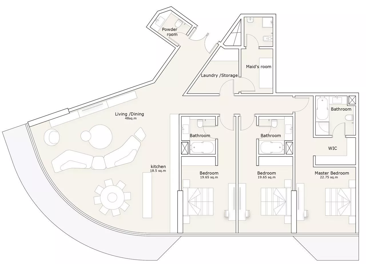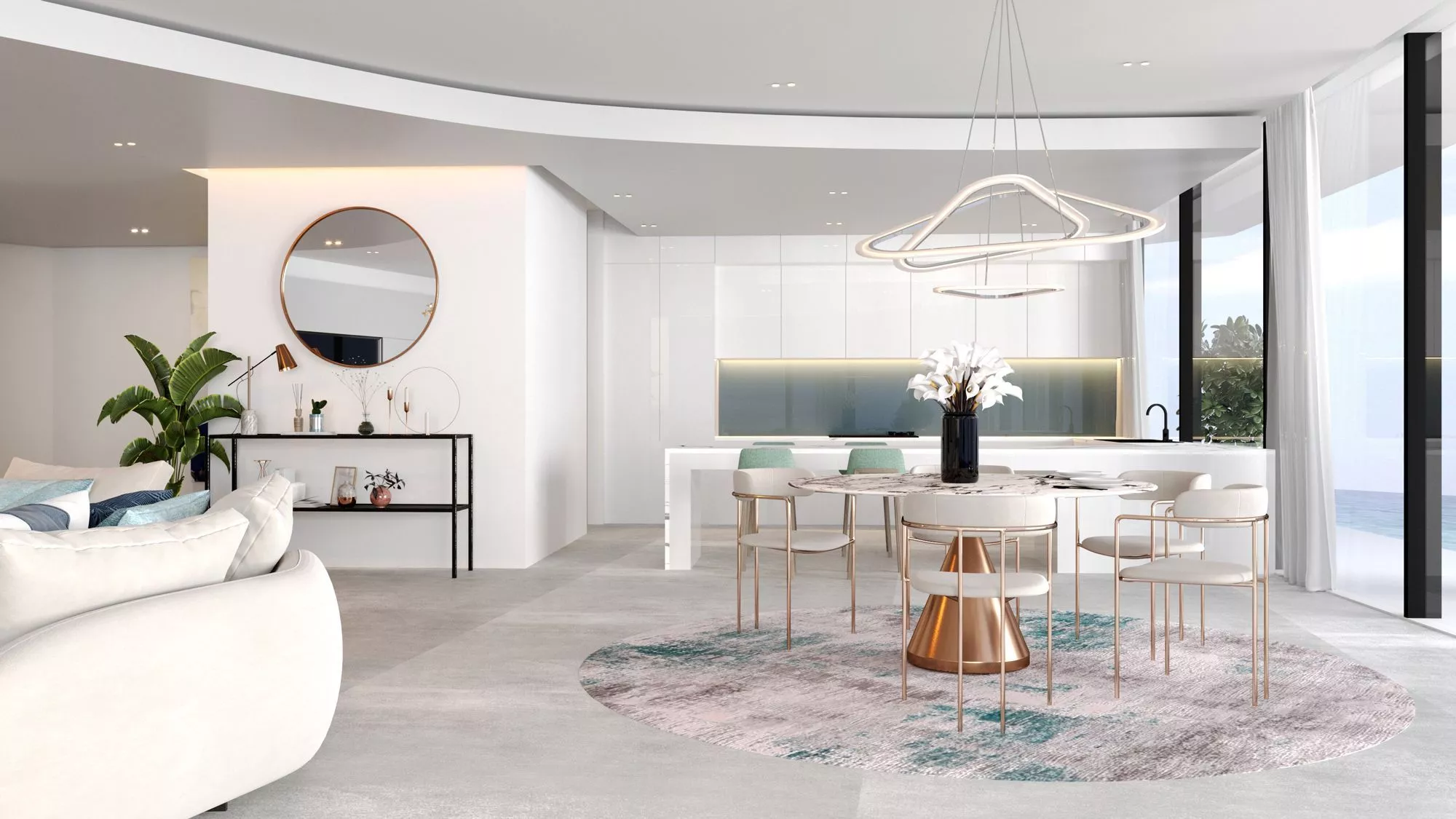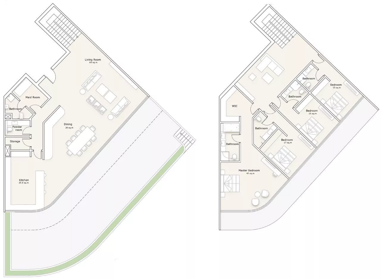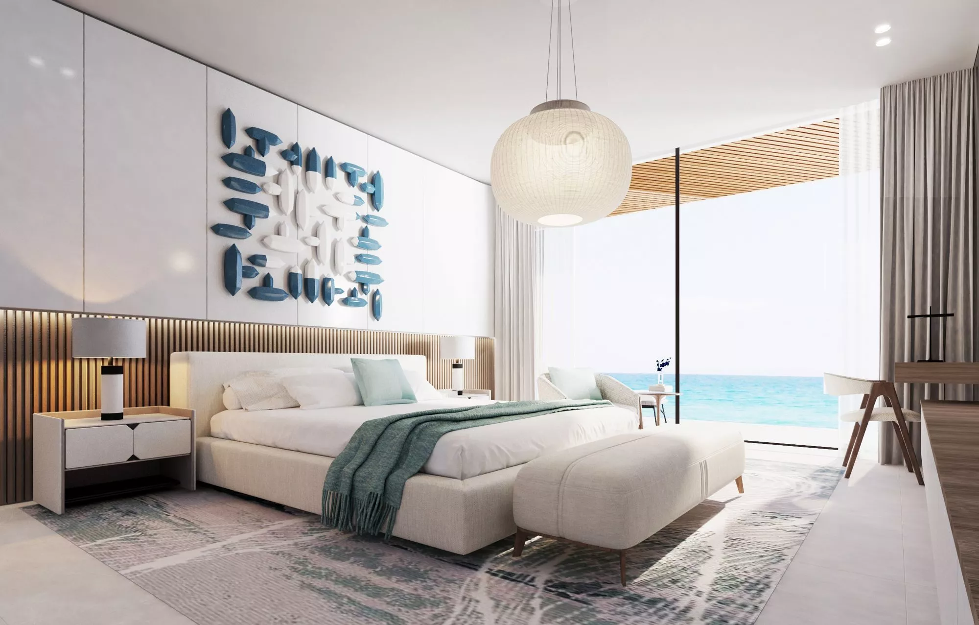 The towers will be designed in an extraordinary triangular shape, providing the maximum number of residents with stunning waterfront and sea views. The stylish interiors of the residences are inspired by their natural surroundings, and will be designed in white, aqua and sand tones.