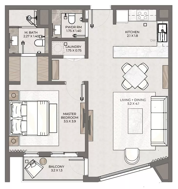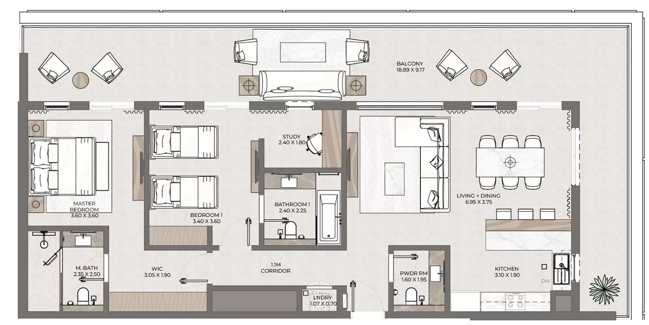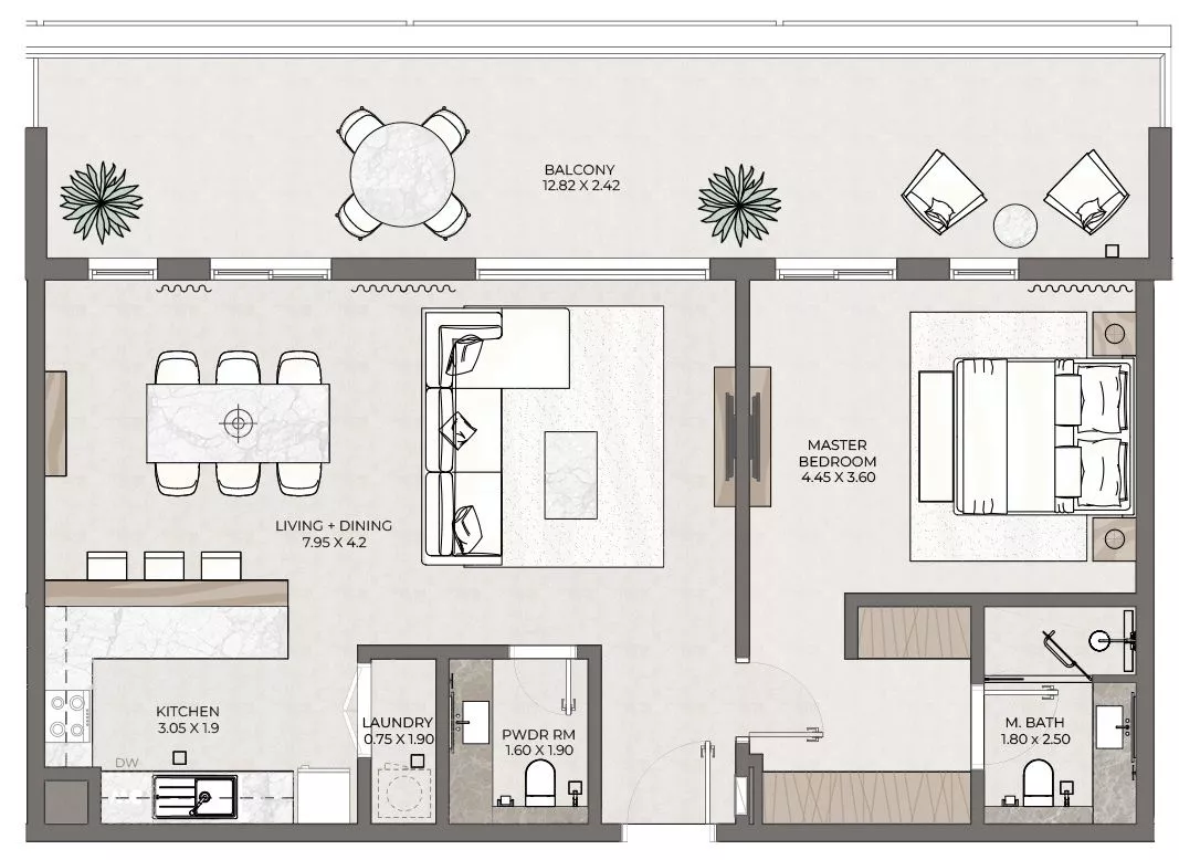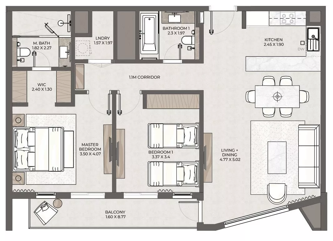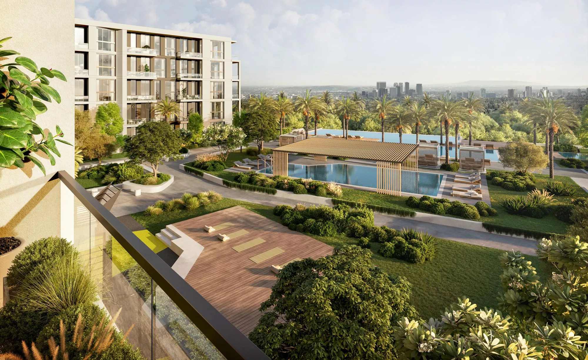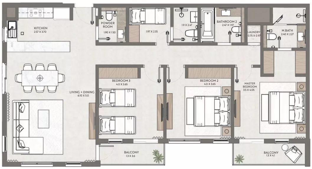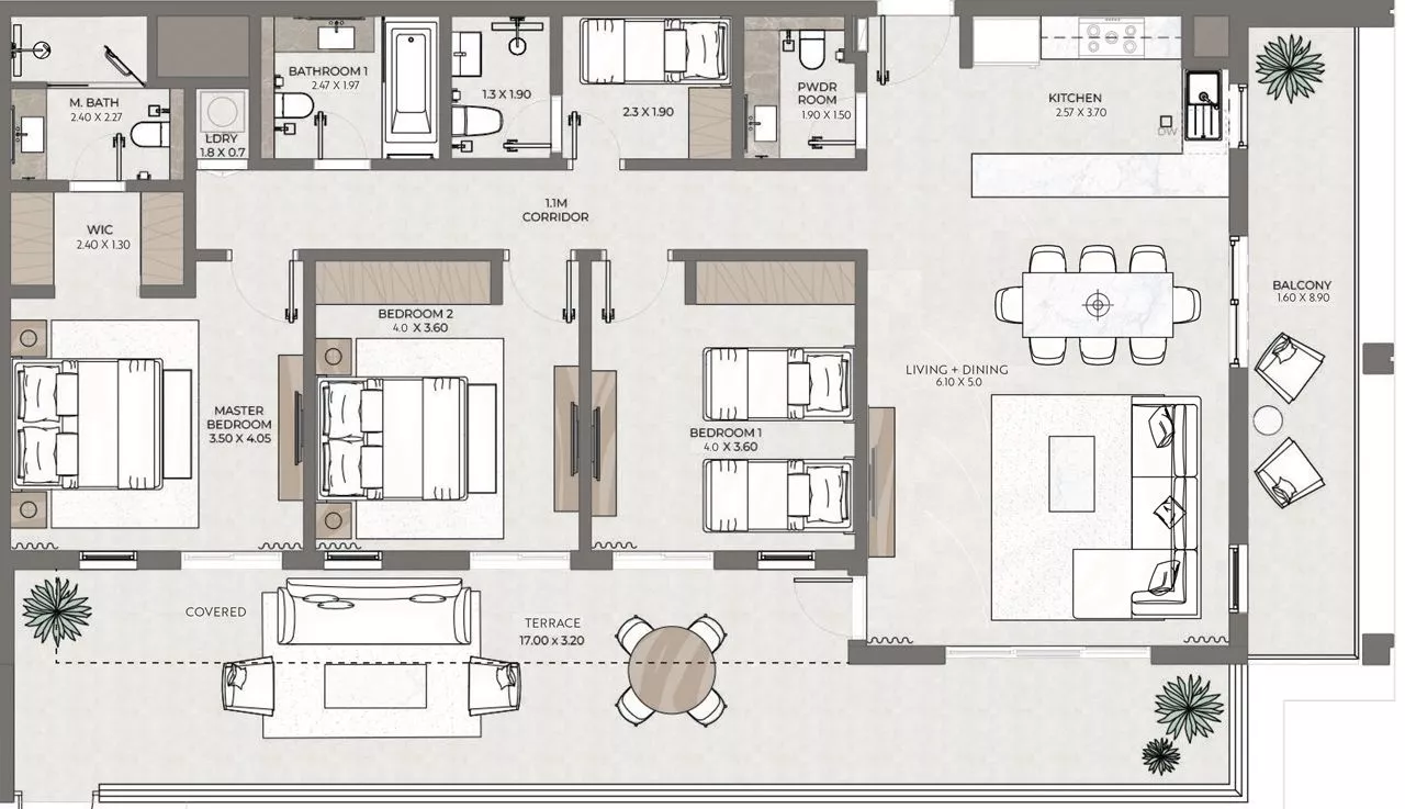 Terrazzo is a premium development by Taraf, the real estate division of the investment holding group Yas Holding, in Jumeirah Village Circle (JVC). It consists of 2 six-floor buildings, with 1–3 bedroom apartments ranging in size from 771 sq. ft to 2,121 sq. ft. The floor plans feature one or more balconies and terraces, whilst the 3-bedroom residences will be additionally equipped with a maid’s room. The nature-inspired decor will be executed in warm earthy green, brown and blue colours.