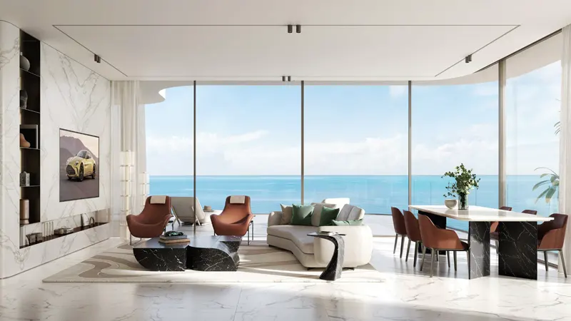 These exclusive premium-class apartments and beach villas are designed to maximise space, comfort and luxury, offering elegant living experience. The dynamic architecture emulates the gentle flow of the waves, ensuring that every residence offers breathtaking views of the surrounding Island. The interiors crafted by the renowned Aston Martin incorporate rich materials such as fine leather, polished metals, and exotic woods that seamlessly integrate into the living spaces. Exuding performance and bespoke style further offers functionality as well as comfort, providing the perfect sanctuary for individuals.