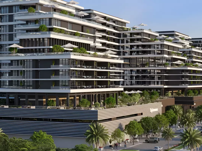 The extensive list of amenities Bay includes an outdoor cinema, tranquility pool, techno gym, mini golf, zen garden, splash pool for kids, plunge pool, single basketball court, kids play zone, retail spaces, meditation lounge, outdoor BBQ station, EV charging station, smart waste system, sustainable water conservation system, and smart home features.